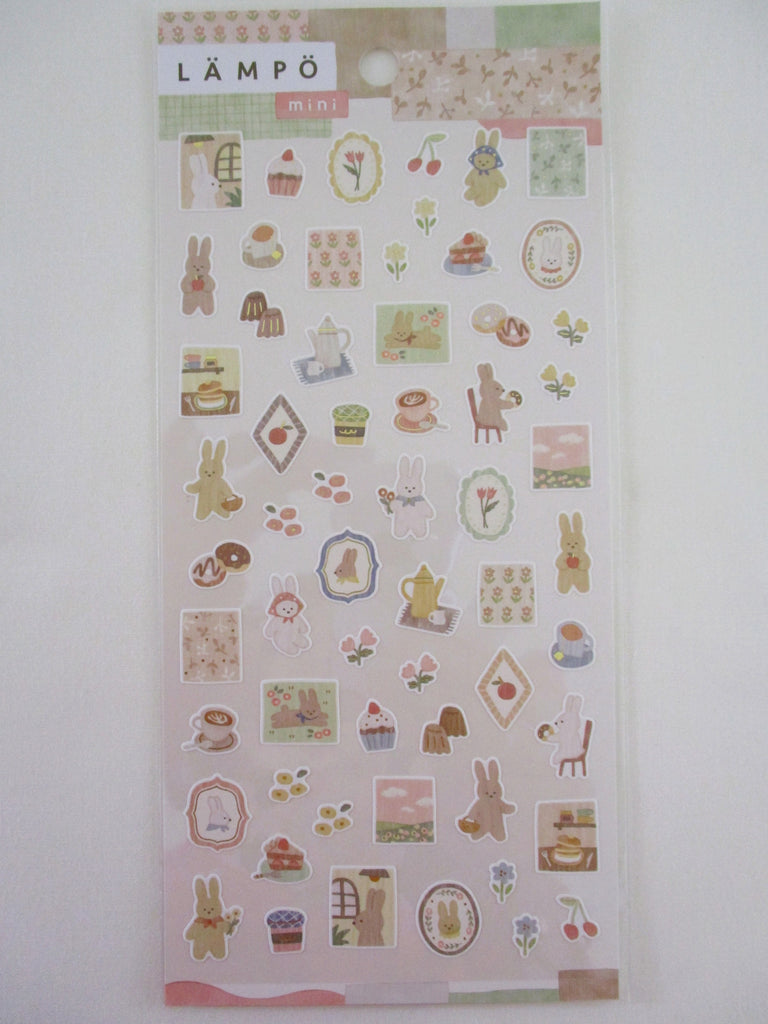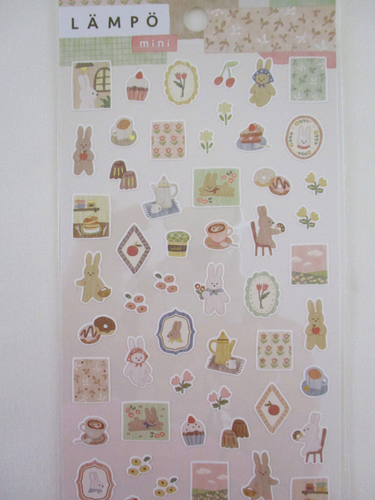Cute Kawaii MW Lampo Mini Scenic Animal Series - C - Bunny Rabbit Strawberry Cake Coffee Tea Pancake Teatime Donut Apple Tulip Food Gardening Tender Classic Sticker Sheet - for Journal Planner Schedule Scrapbook Craft Diary Gift