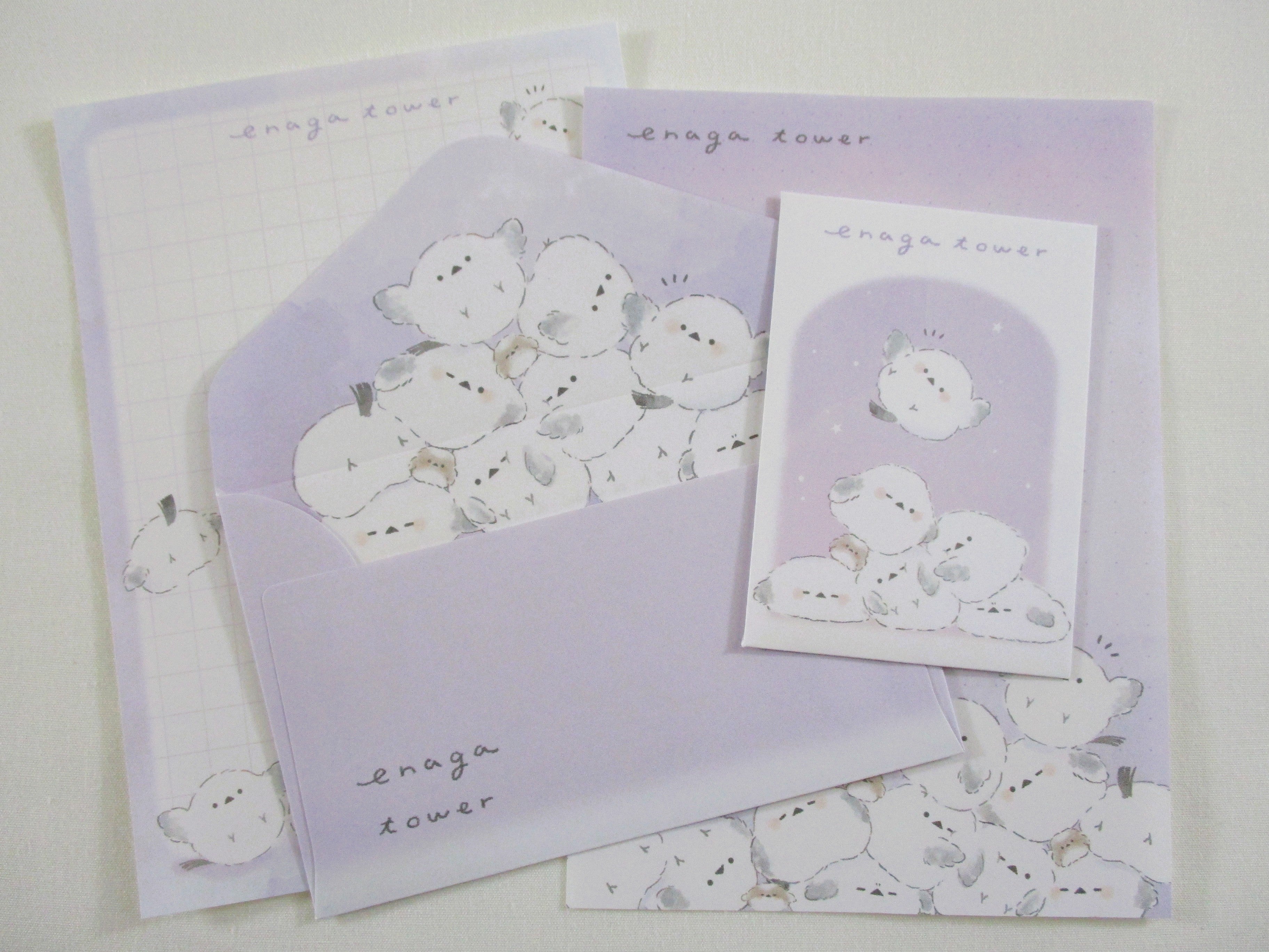 Cute Kawaii Q-Lia Bird Enaga Tower Mini Letter Sets - Small Writing Note Envelope Set Stationery Gift