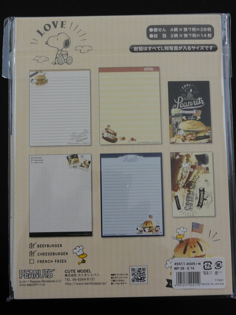 Cute Kawaii Kamio Peanuts Snoopy Burger Letter Set Pack - Stationery Penpal