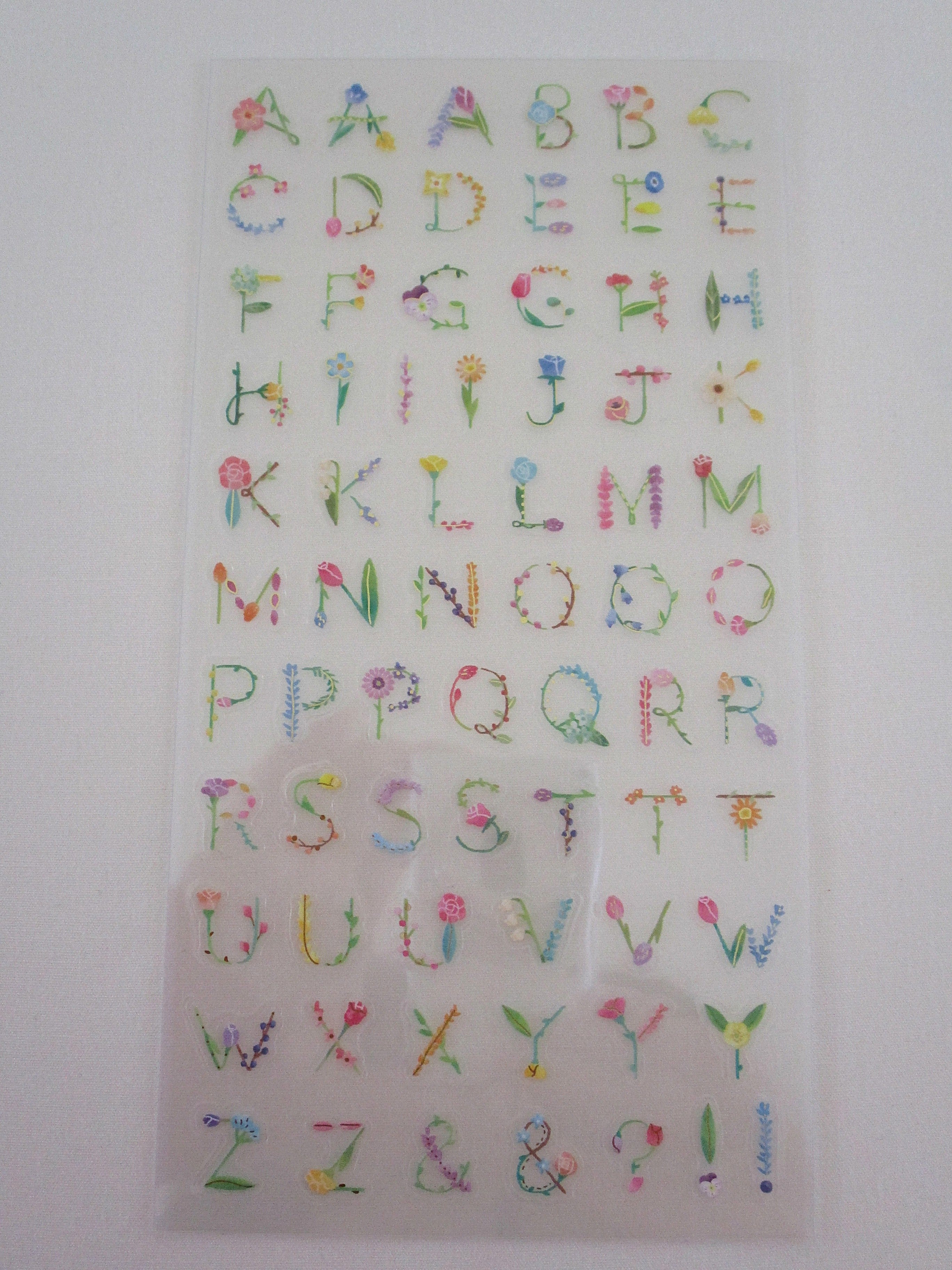 Mind Wave brand: flower theme alphabet sticker sheet.