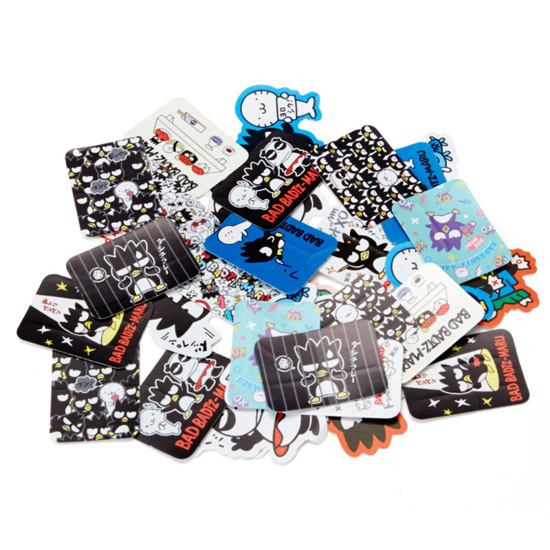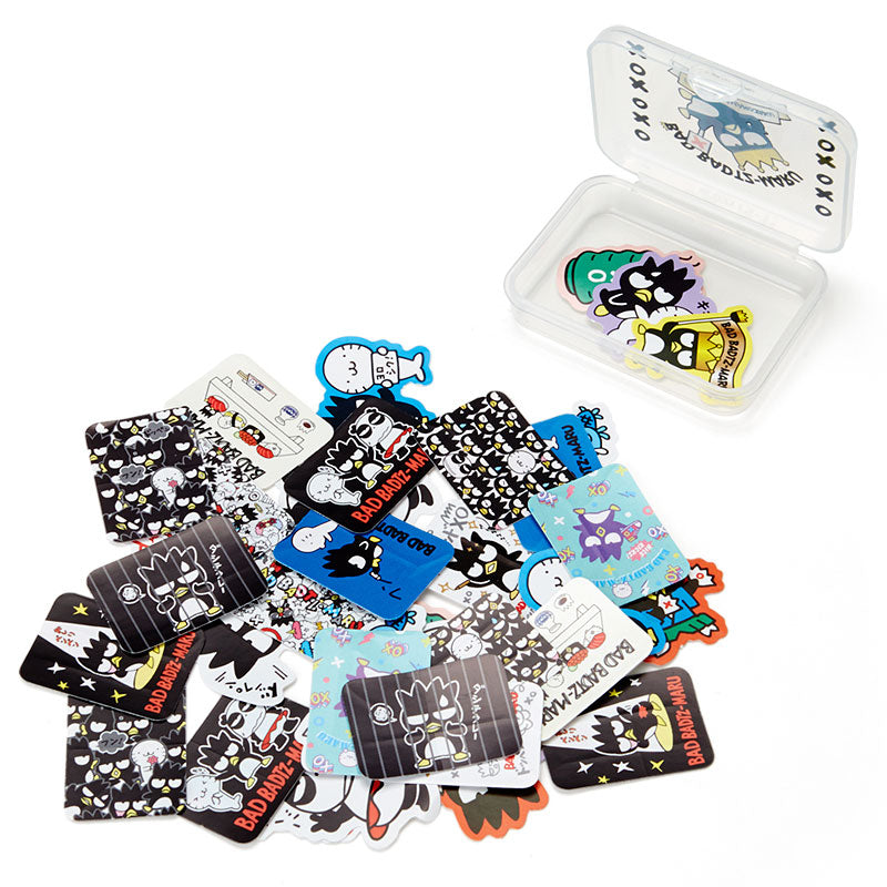 Sanrio Badtz Maru flakes sticker in matching mini plastic container.