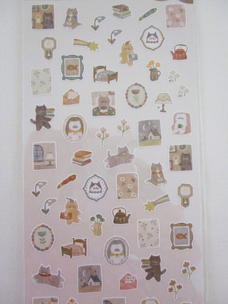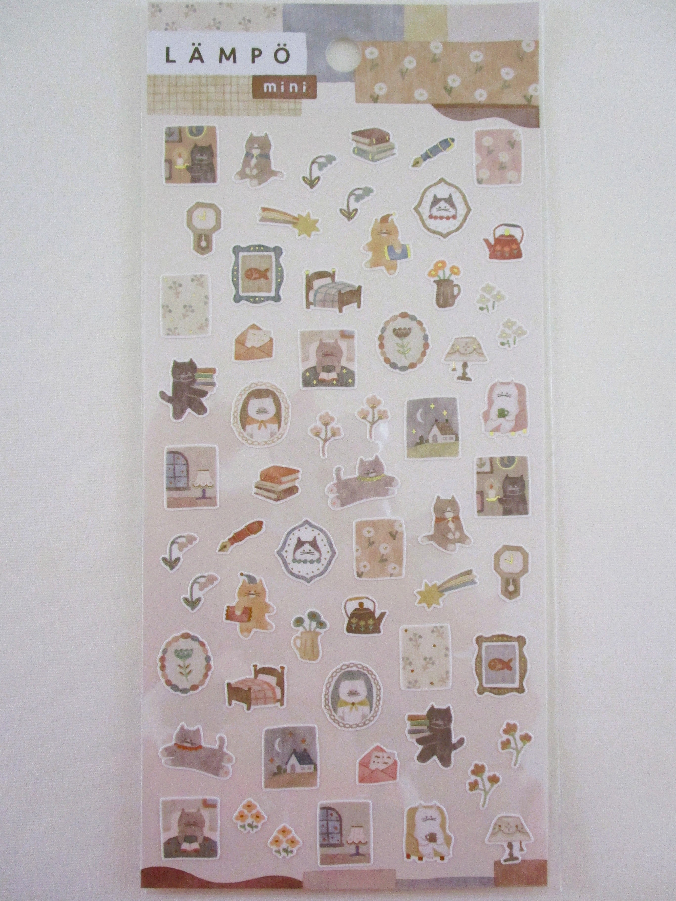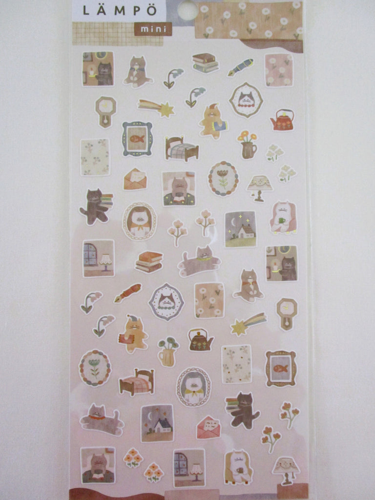 Cute Kawaii MW Lampo Mini Scenic Animal Series - E - Cat Home Sweet Home Reading Writing Friends Tender Classic Sticker Sheet - for Journal Planner Schedule Scrapbook Craft Diary Gift