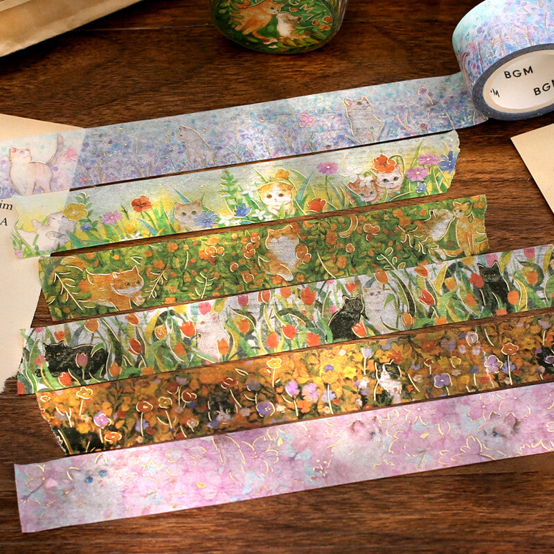 Cute Kawaii BGM Washi / Masking Deco Tape - Cat Kitten Feline Flower Garden A - for Scrapbooking Journal Planner Craft