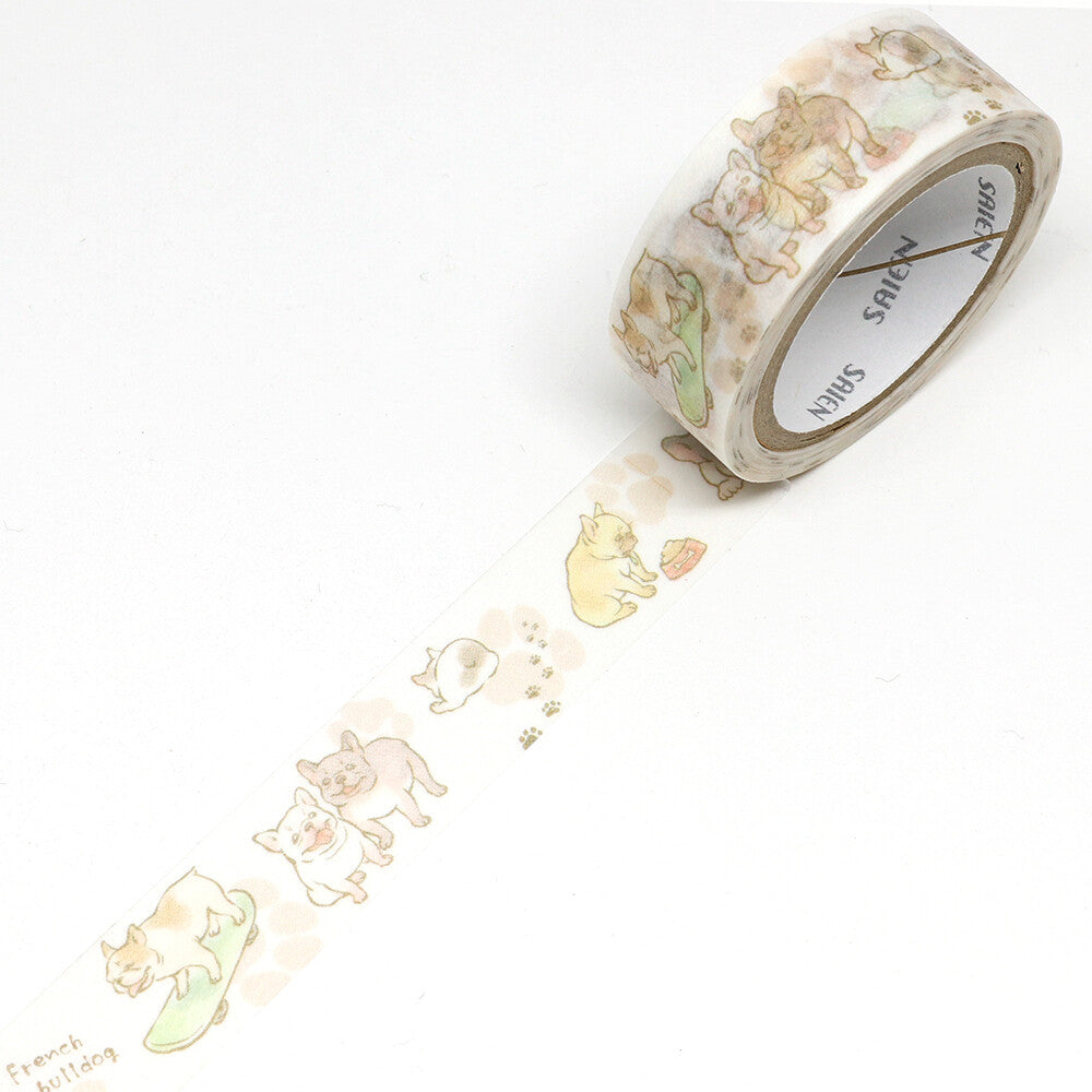 Cute Kawaii Saien Washi / Masking Deco Tape - Dog Bulldog Pet - for Scrapbooking Journal Planner Craft