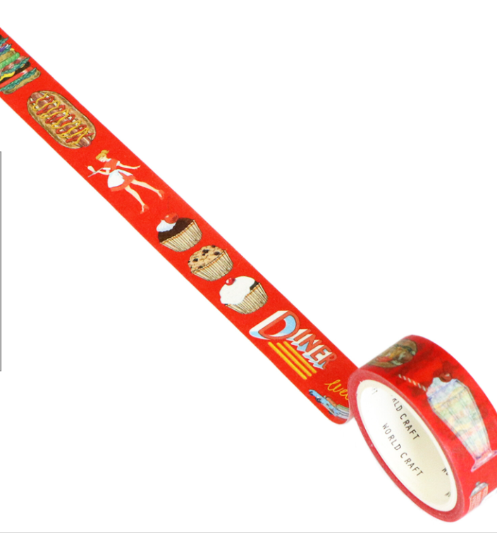 Cute Kawaii World Craft Washi / Masking Deco Tape - Classic Retro Diner Burger Drink - for Scrapbooking Journal Planner Craft