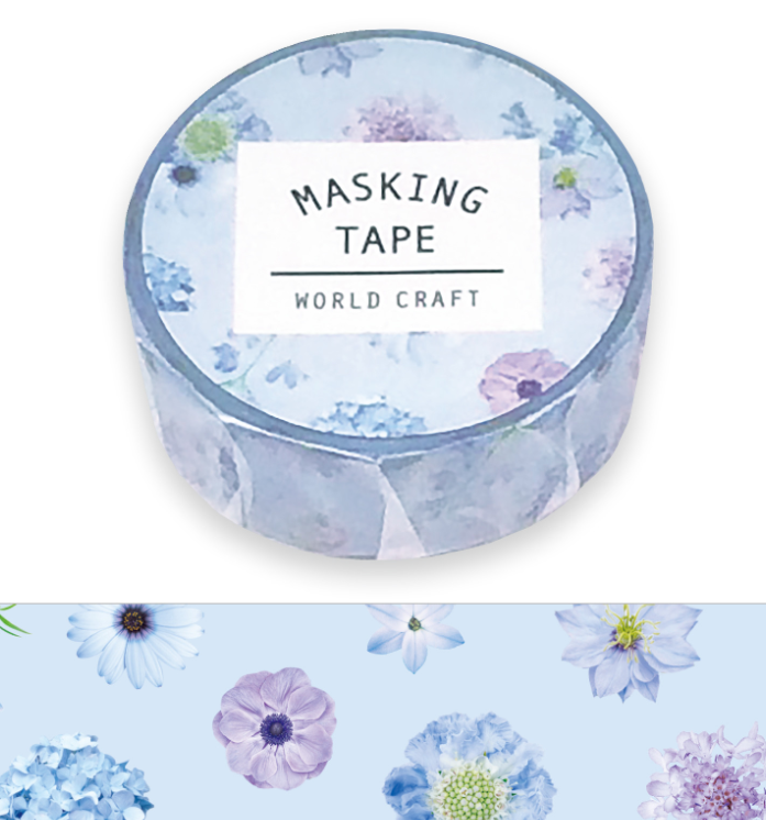 Cute Kawaii World Craft Washi / Masking Deco Tape - Flowers Blue - for Scrapbooking Journal Planner Craft