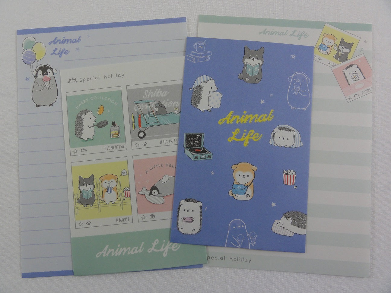 Cute Kawaii Kamio Hedgehog and Dog Mini Letter Sets - Small Writing Note Envelope Set Stationery