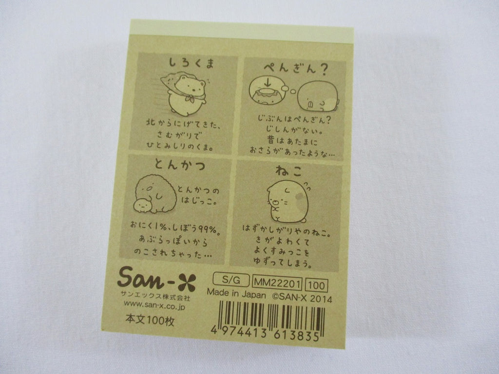 Cute Kawaii San-X Sumikko Gurashi Mini Notepad / Memo Pad - B - 2014 - Rare HTF