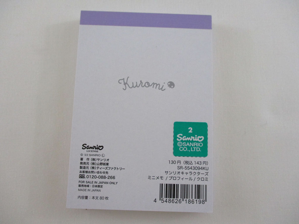 Cute Kawaii Sanrio Kuromi Mini Notepad / Memo Pad Kamio - Stationery Designer Paper Collection