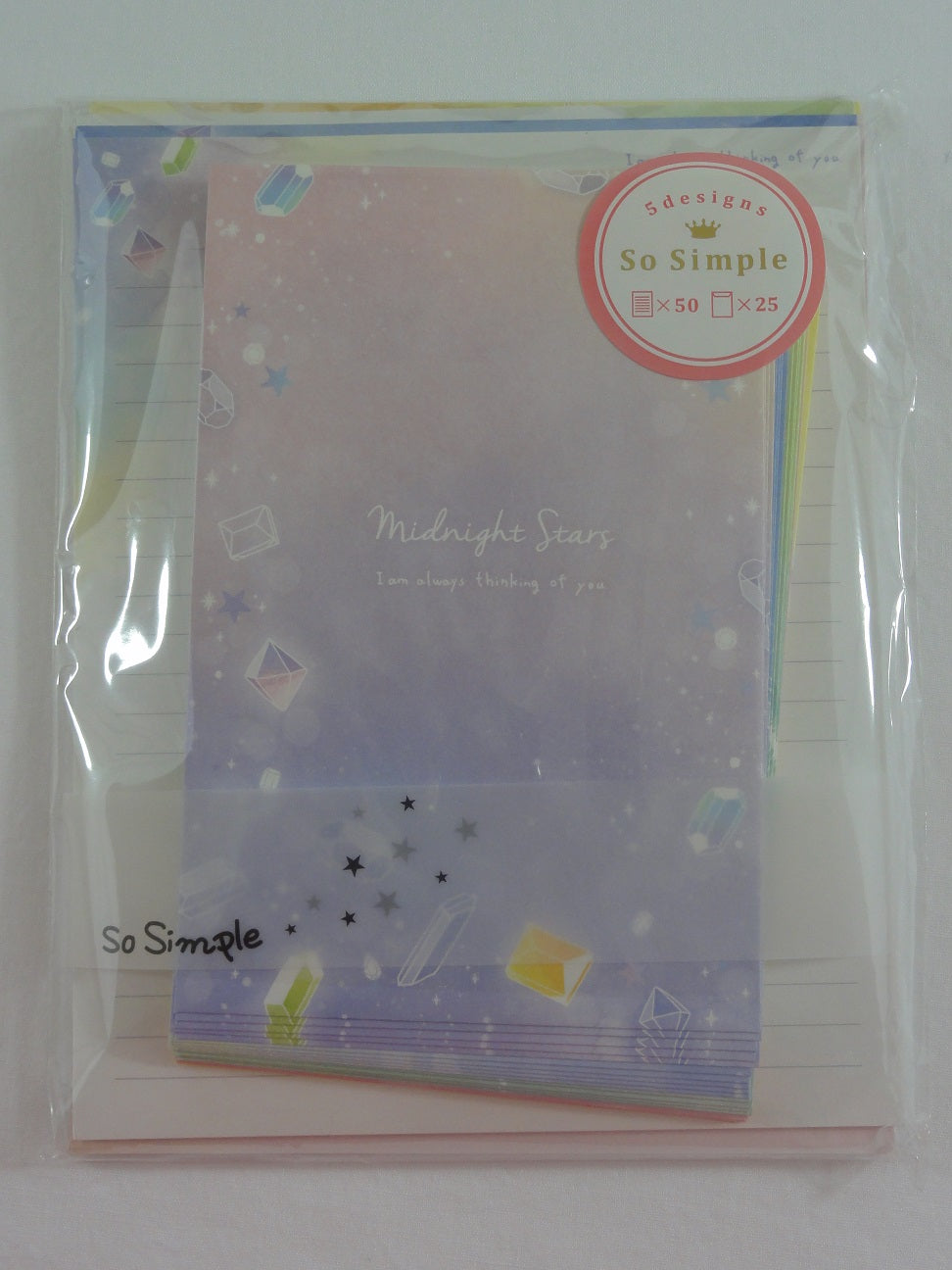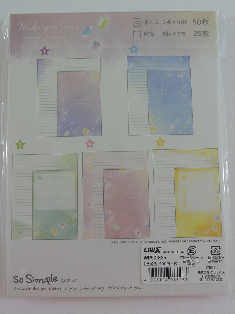 Cute Kawaii Crux Midnight Stars Letter Set Pack - Stationery Writing Paper Penpal
