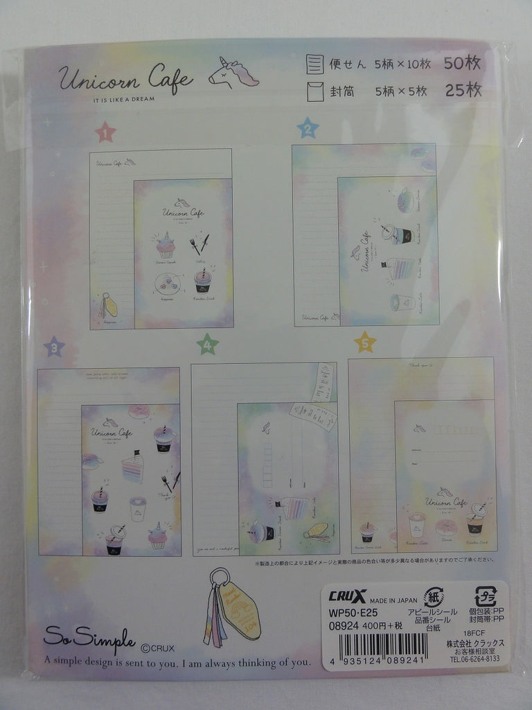 Cute Kawaii Crux Unicorn Cafe Letter Set Pack - Stationery Writing Paper Penpal Collectible