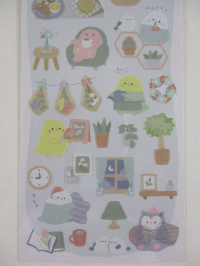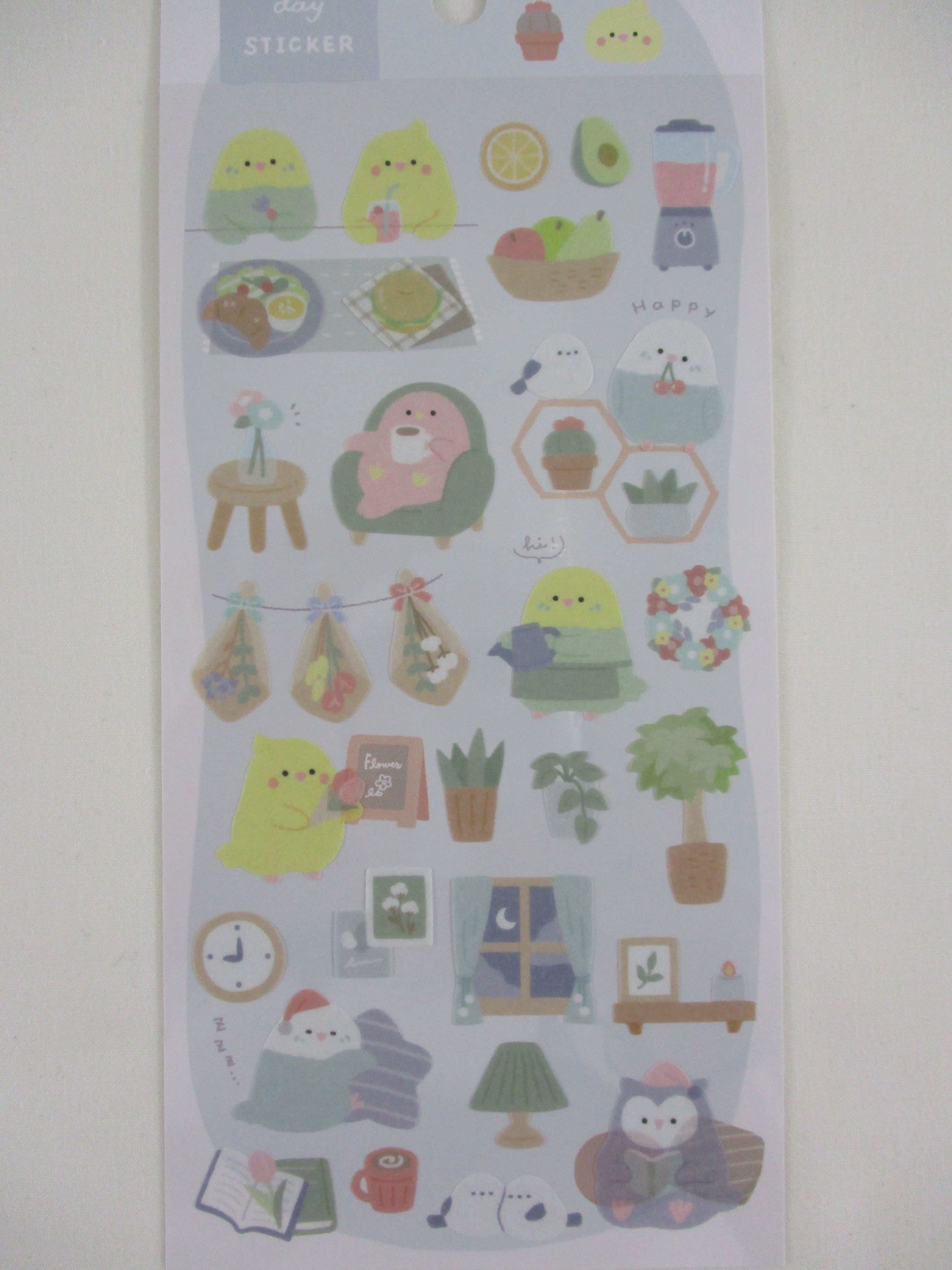 Cute Kawaii Crux Yururu Home Activities Series Sticker Sheet - Bird Breakfast Reading Gardening - for Journal Planner Craft