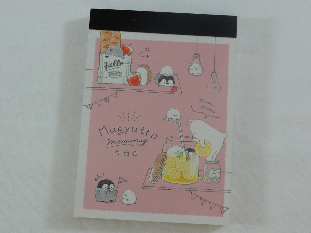 Cute Kawaii Hedgehog Bear Penguin Mugyutto Memory Mini Notepad / Memo Pad - E - Stationery Design Writing Collection