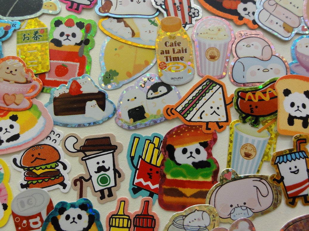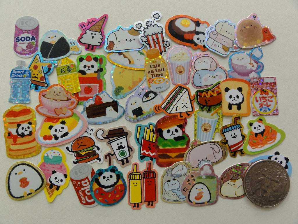 44 Food theme (junk food, marshmallow, soda, latte, rice ball) flake stickers (44 different designs)