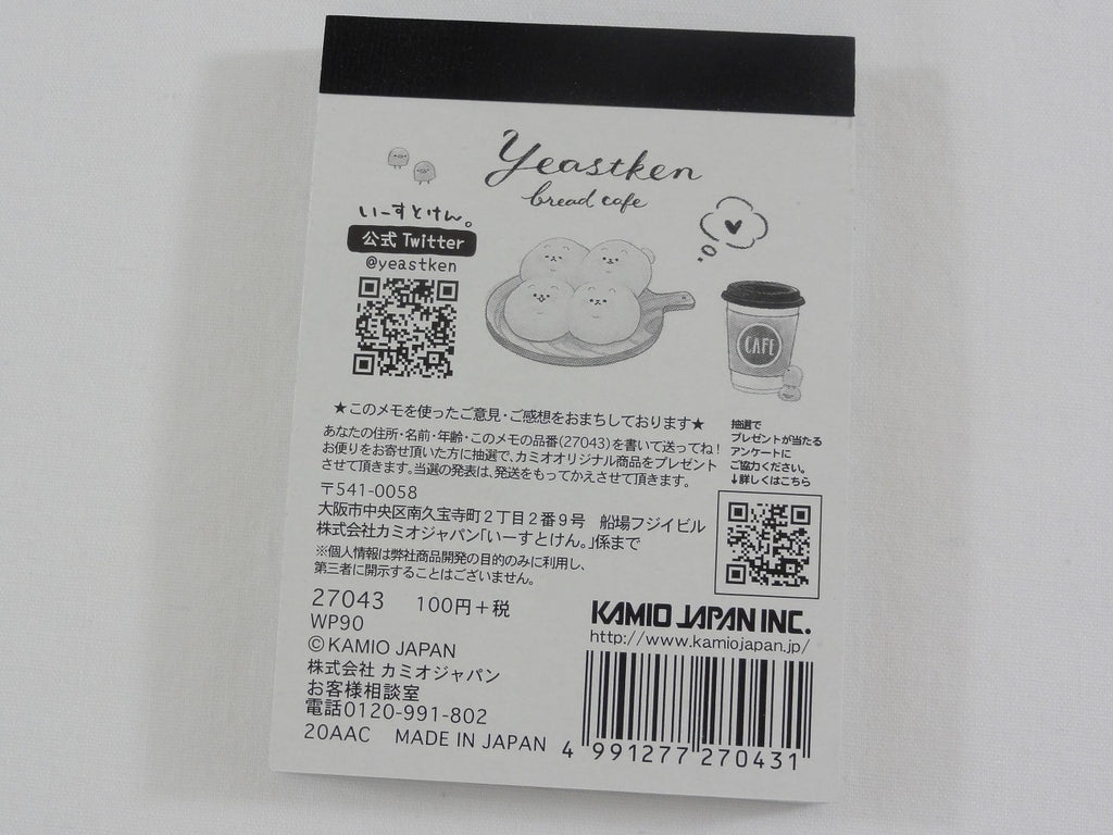 Cute Kawaii Kamio Bread Yeastken Bakery Cafe Mini Notepad / Memo Pad - C - Stationery Designer Writing Paper Collection