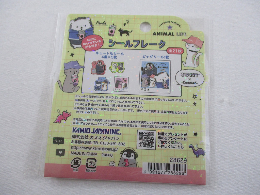 Cute Kawaii Kamio Dog Hedgehog and Penguin Flake Stickers Sack - for Journal Planner Craft Scrapbook Agenda