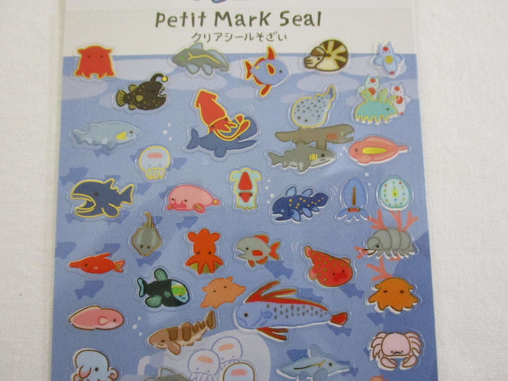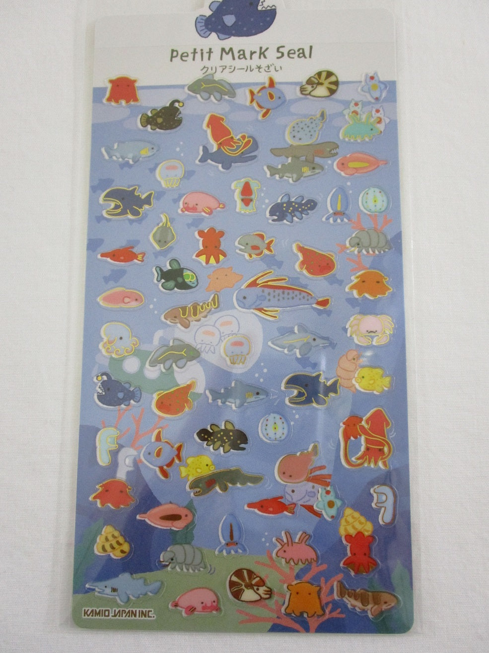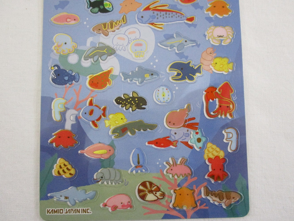 Cute Kawaii Kamio Fish Sea Ocean Sticker Sheet - with Gold Accents - for Journal Planner Craft Agenda Organizer Scrapbook