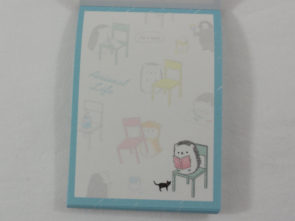 Cute Kawaii Kamio Hedgehog Dog Friends Craft Time Mini Notepad / Memo Pad - Stationery Design Writing Collection