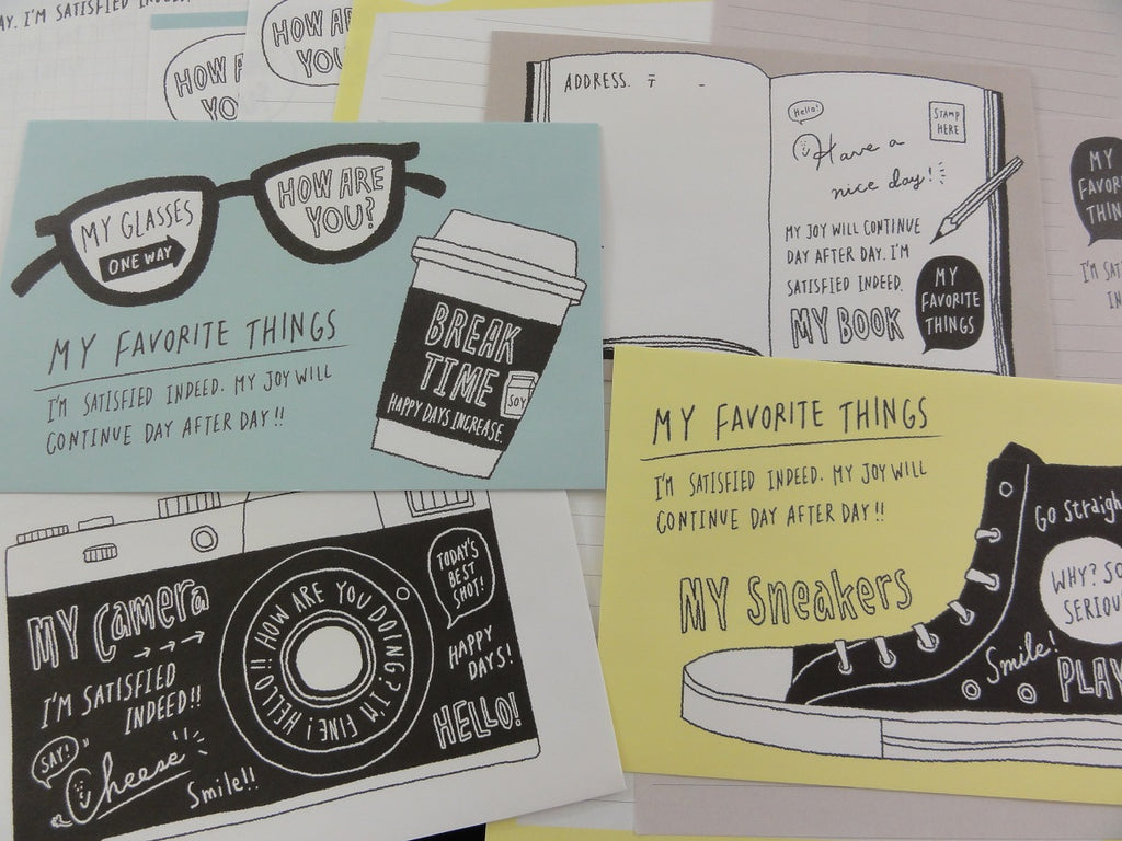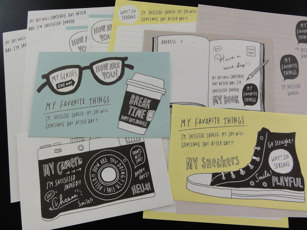 4 My Favorite Things (my book, my camera, my sneakers, my coffee) letter sets from Kamio Japan