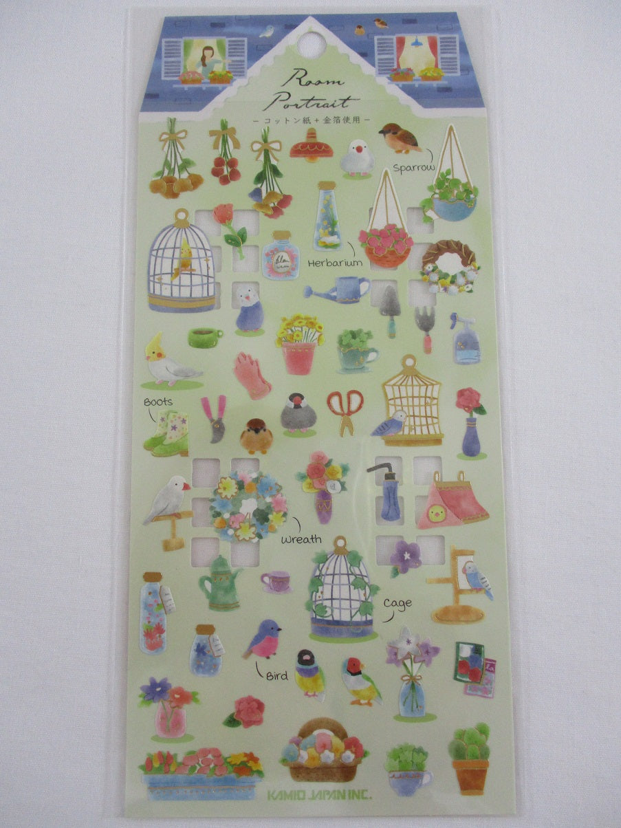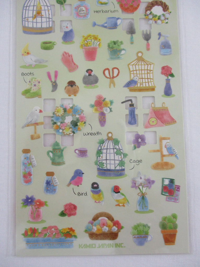 So many stickers: greens, flowers, herbarium, birds, gardening tools, etc.