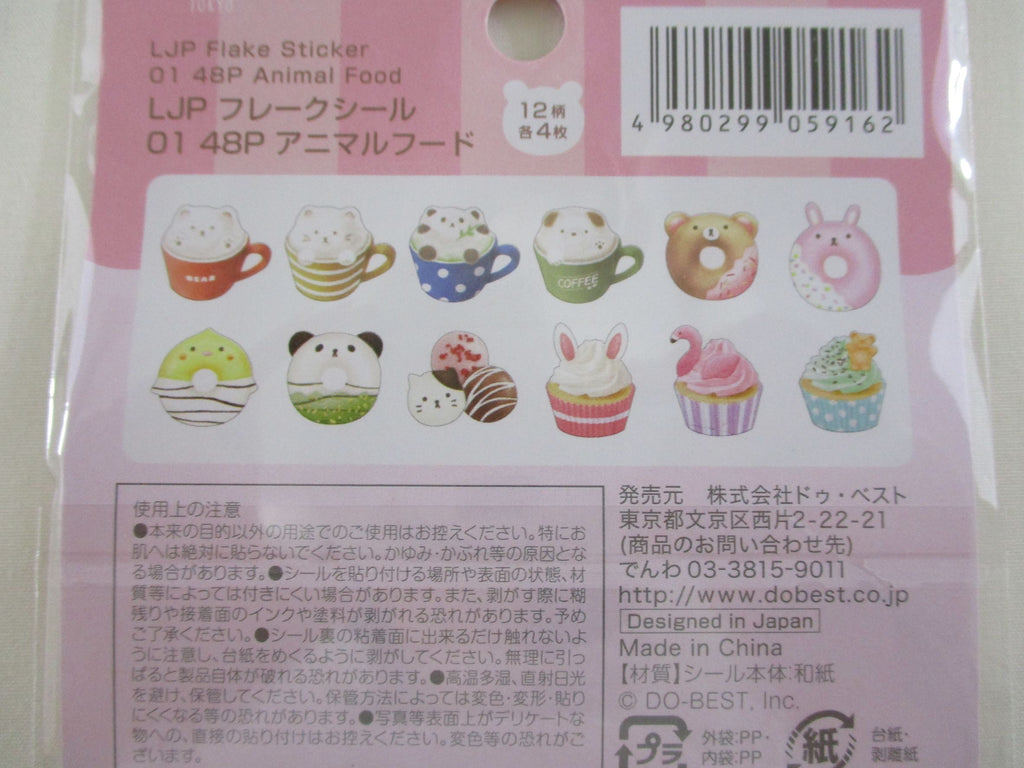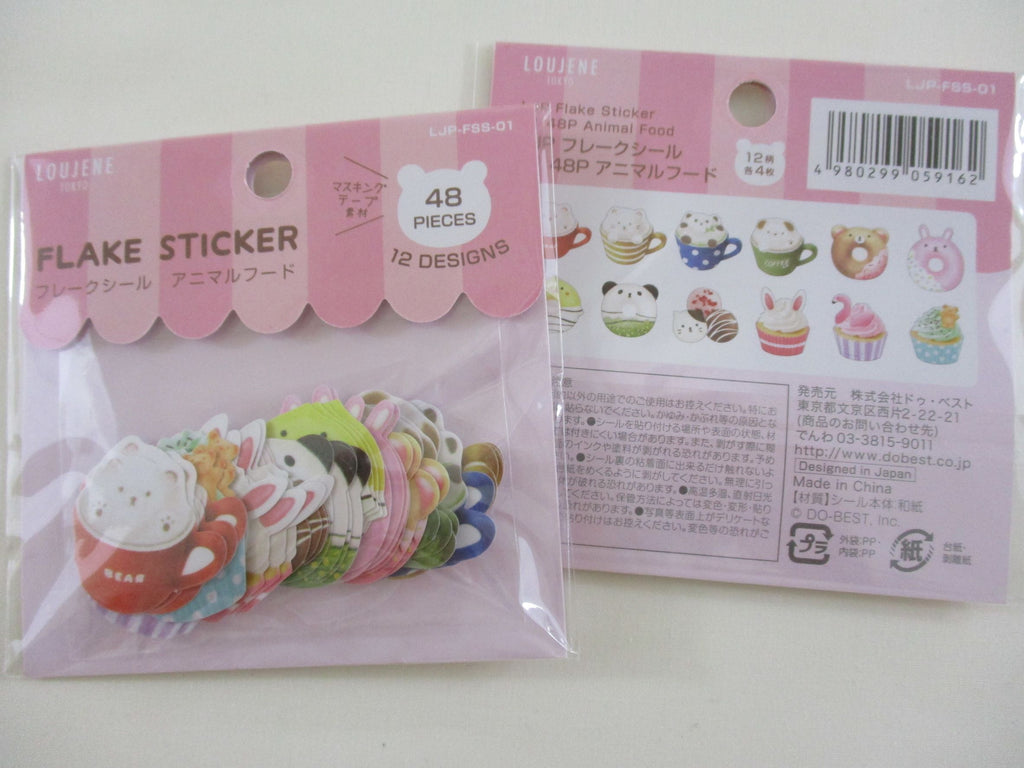Cute Kawaii Loujene Flake Stickers Sack - Cat Bear Panda Animal Sweets and Drink - for Journal Agenda Planner Scrapbooking Craft