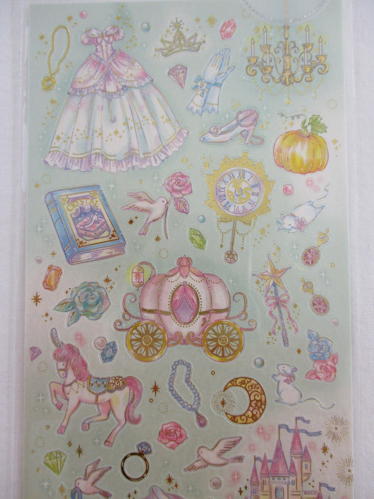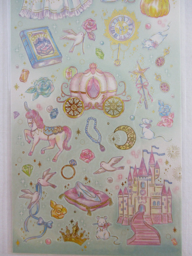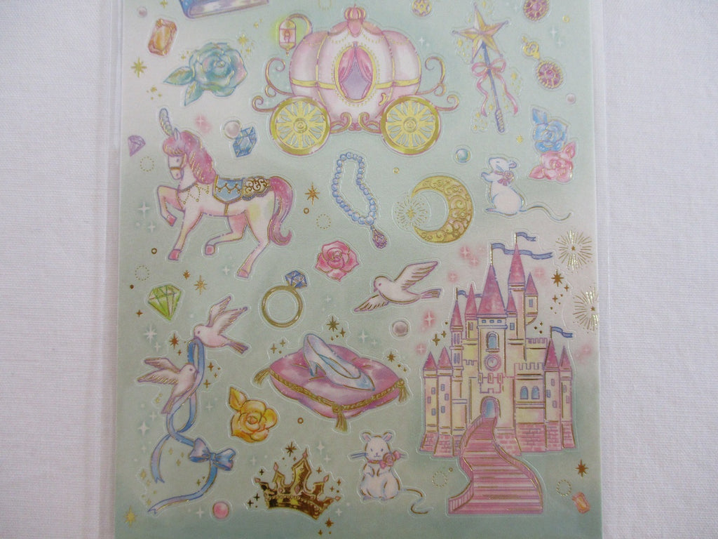 Cute Kawaii Mind Wave Fairy Tale Princess Theme Sticker Sheet - Green Cinderella Castle - for Journal Planner Craft