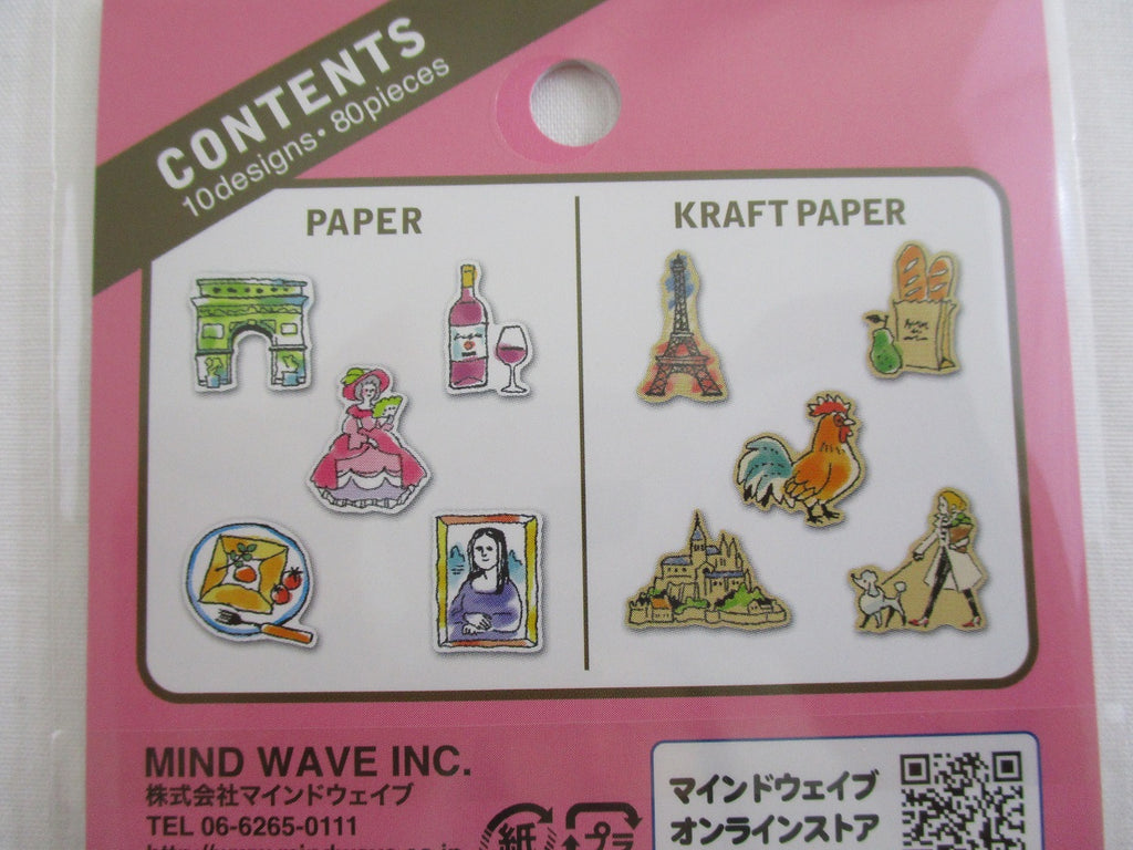 Cute Kawaii Mind Wave Favorite Travel Vacation France Flake Stickers Sack - for Journal Agenda Planner Scrapbooking Craft