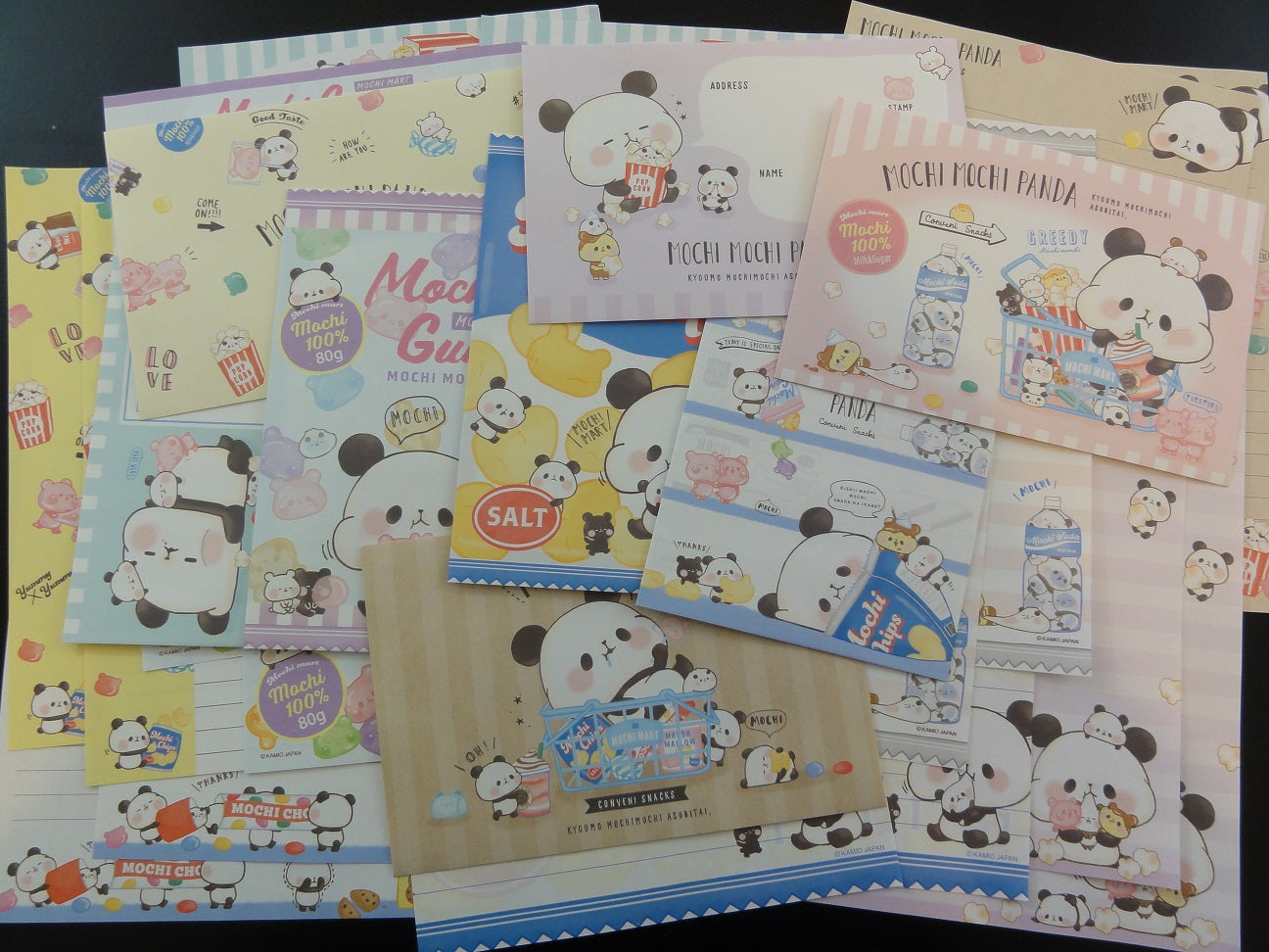 8 letter sets (8 different designs) of Mochi Popcorn Panda from Kamio Japan.