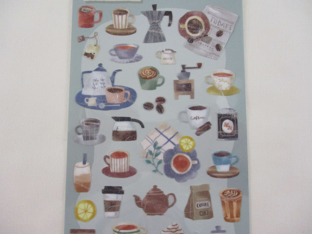 Cute Kawaii MW Gentle Warm Seal Series - D - Coffee Espresso Mocha Tea Sugar Reading Sticker Sheet - for Journal Planner Craft
