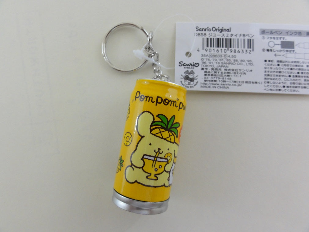 Sanrio Pom Pom Purin keychain with hidden pen inside.
