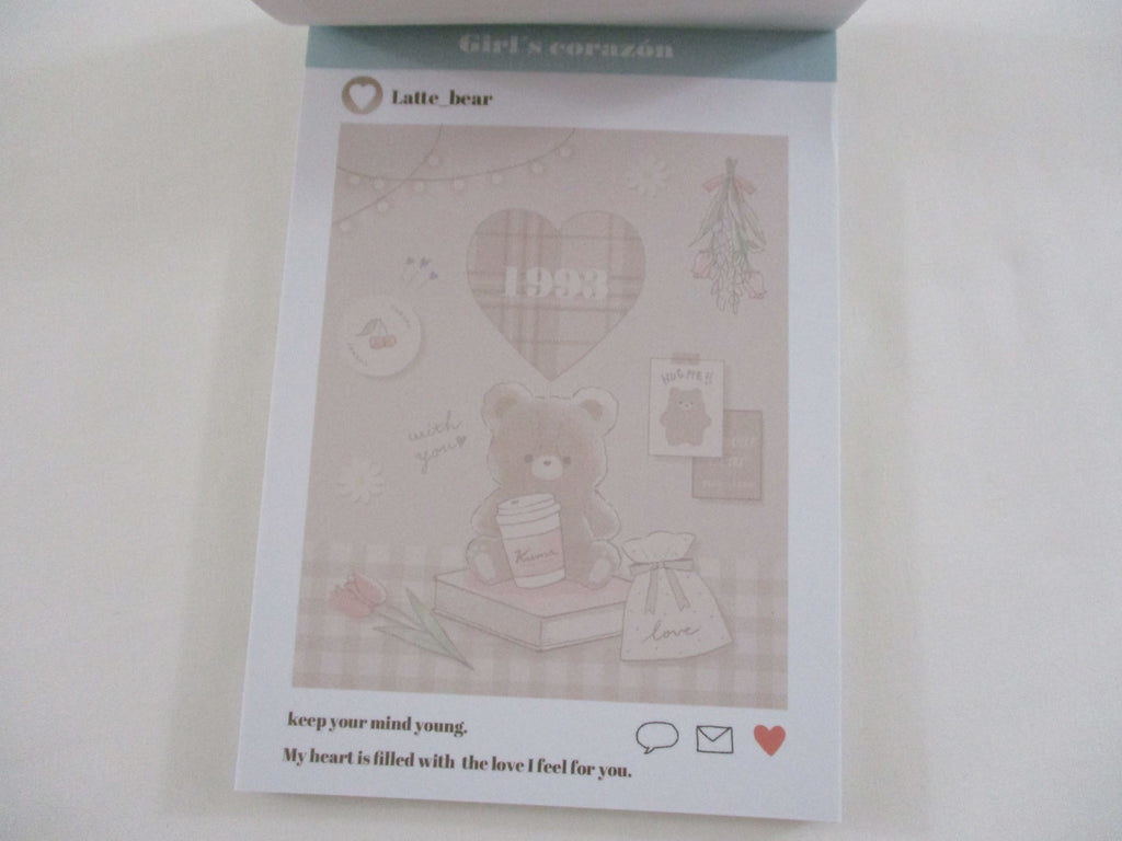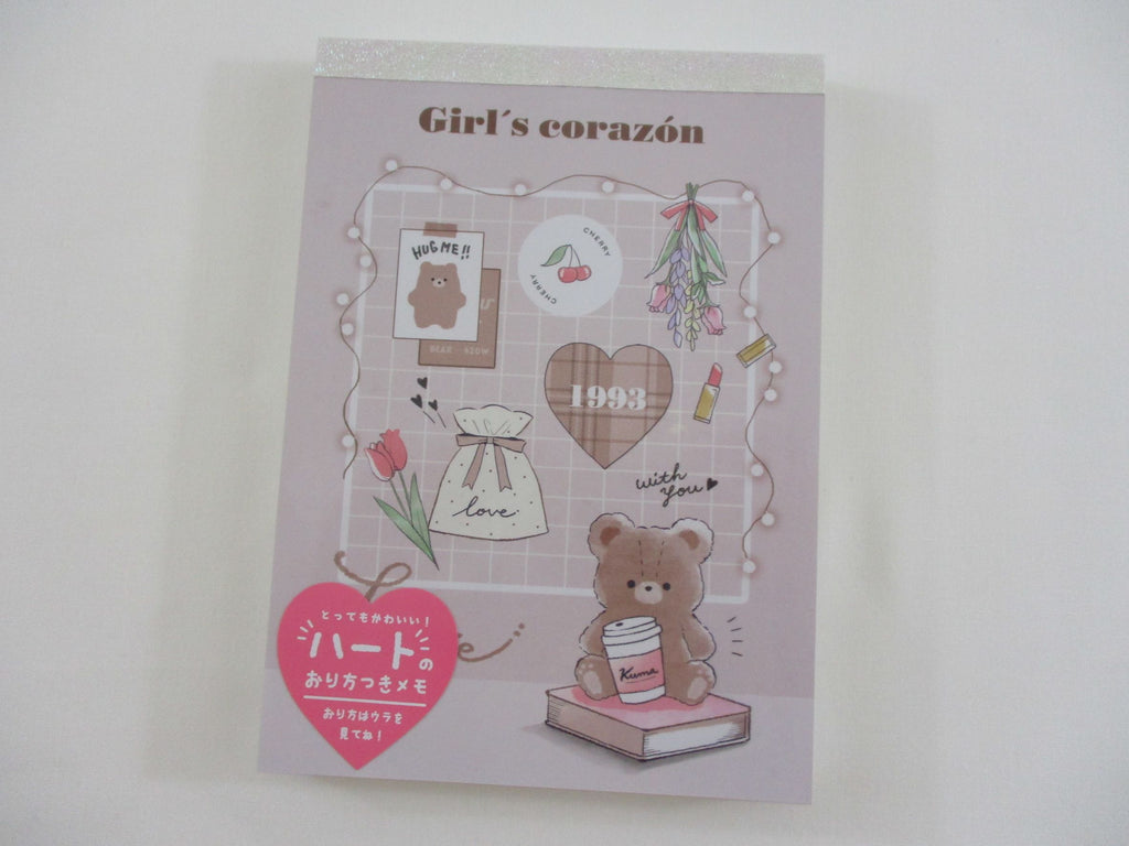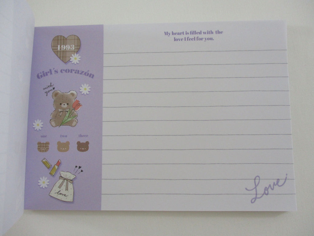 Cute Kawaii Q-Lia Bear Kuma Love with you 4 x 6 Inch Notepad / Memo Pad - Stationery Designer Paper Collection