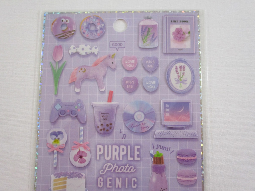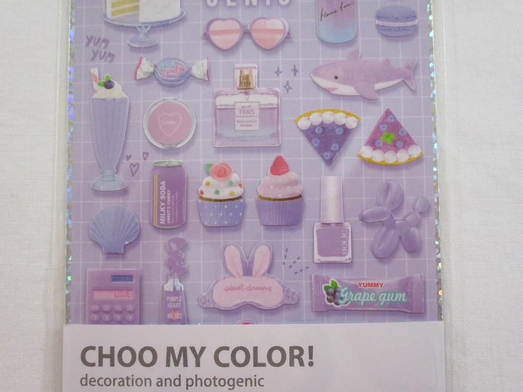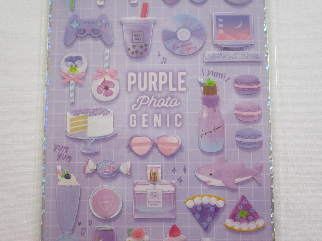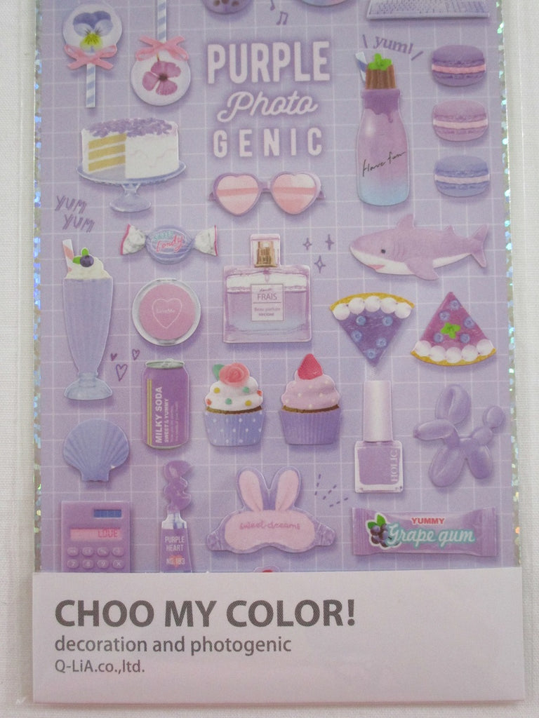 Cute Kawaii Q-Lia Photo Genic - Purple - Bubble Tea Cupcake Shark Candy Sweets Music Sticker Sheet - for Journal Planner Craft