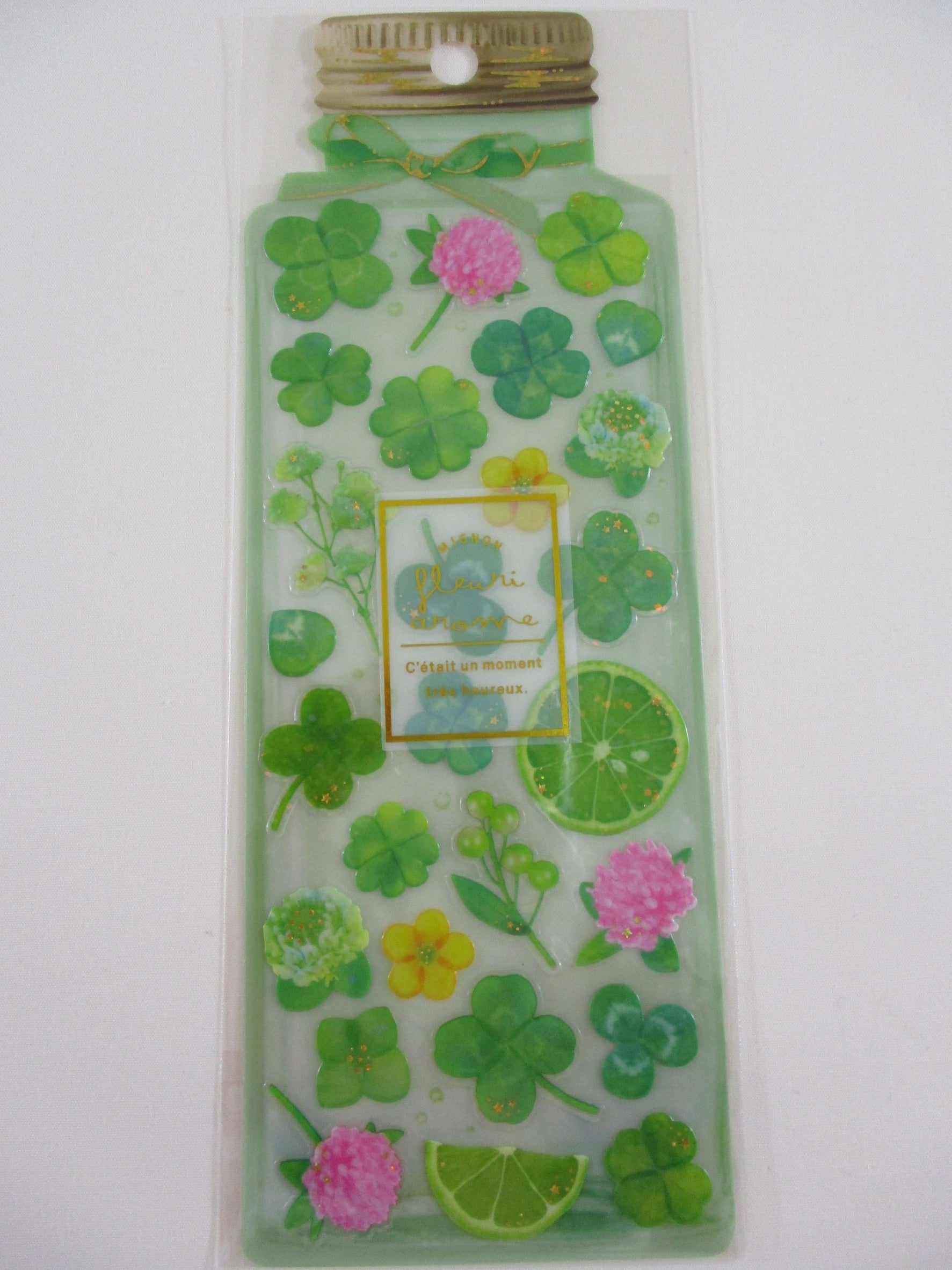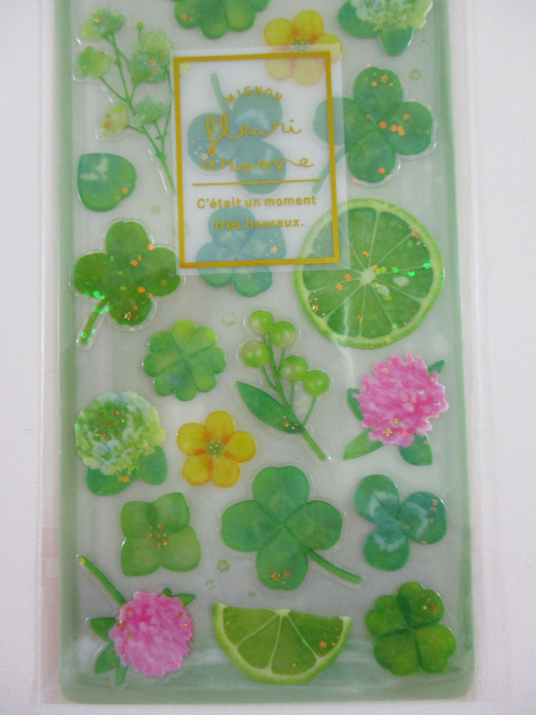 Cute Kawaii Qlia Fleur Arome Scented Flower Sticker Sheet - Green Clover Lime - for Journal Planner Craft Organizer Calendar