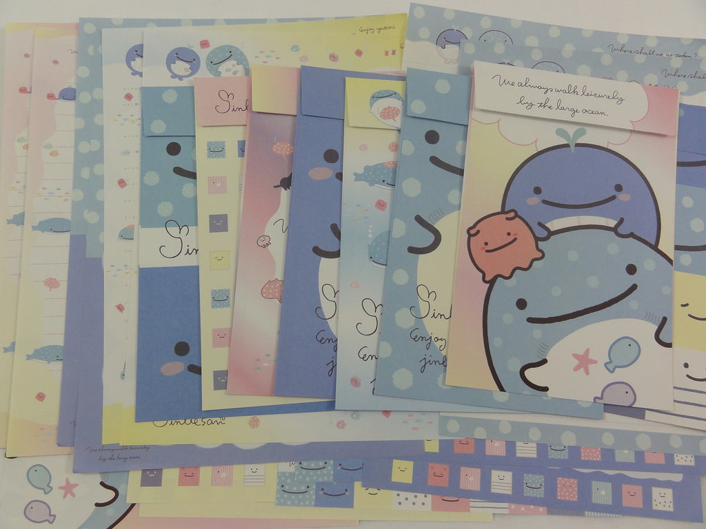 These are 8 letter sets (8 different designs) of Jinbesan whale from San-X 2018 Japan.