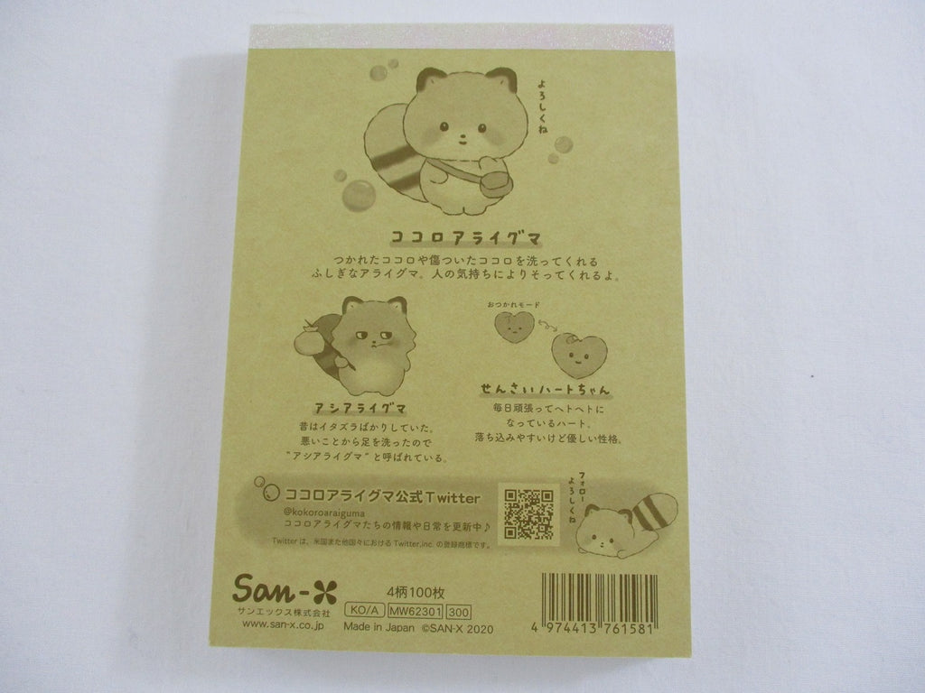 Cute Kawaii San-X Kokoro Araiguma Raccoon 4 x 6 Inch Notepad / Memo Pad - A - Stationery Designer Paper Collection