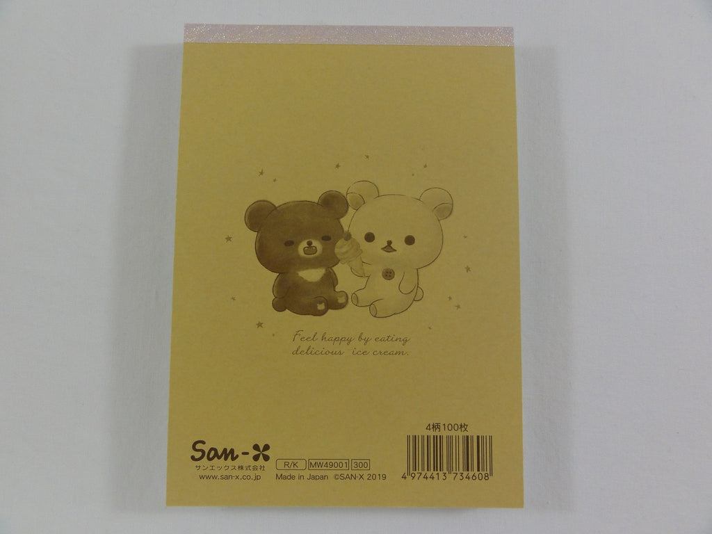 Cute Kawaii San-X Rilakkuma Bear Chairoikoguma Ice Cream 4 x 6 Inch Notepad / Memo Pad - Stationery Designer Paper Collection