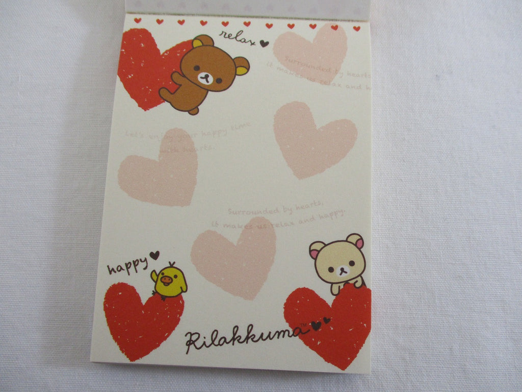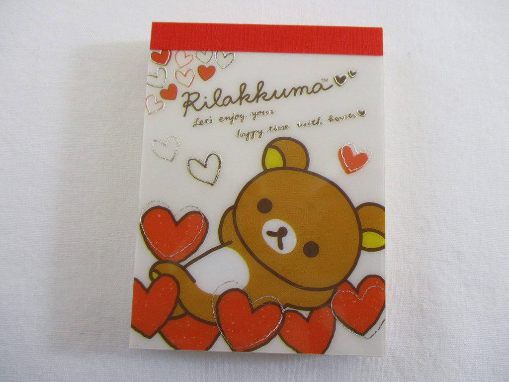 Cute Kawaii San-X Rilakkuma Bear Hearts Mini Notepad / Memo Pad - A - Stationery Writing Message