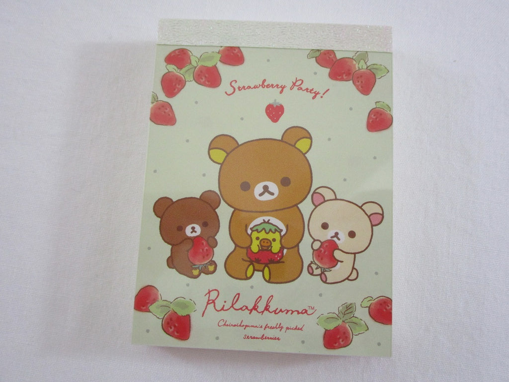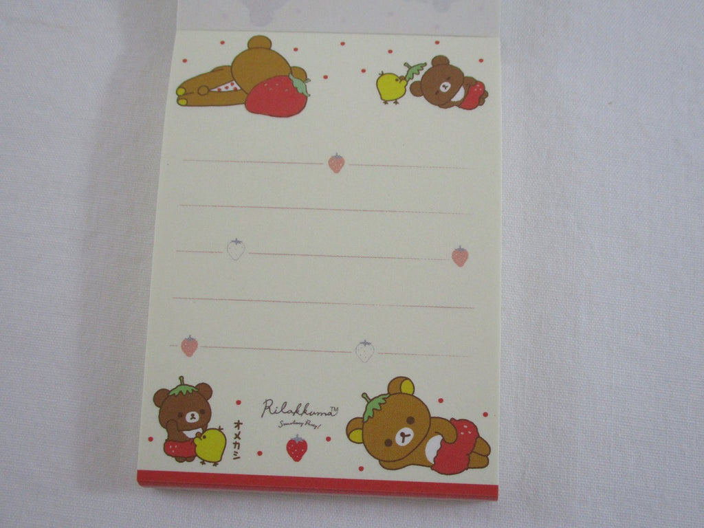 Cute Kawaii San-X Rilakkuma Bear Strawberry Mini Notepad / Memo Pad - A - Stationery Writing Message