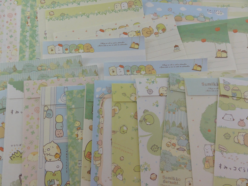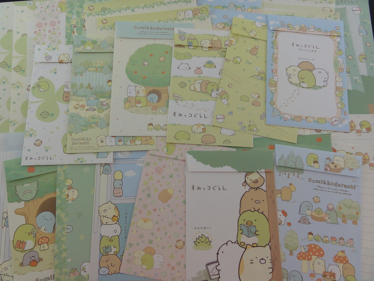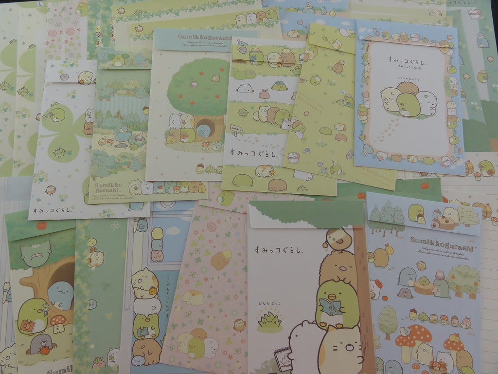 12 letter sets (12 different designs) of Sumikko Gurashi green theme from San-X Japan 2014 & 2017