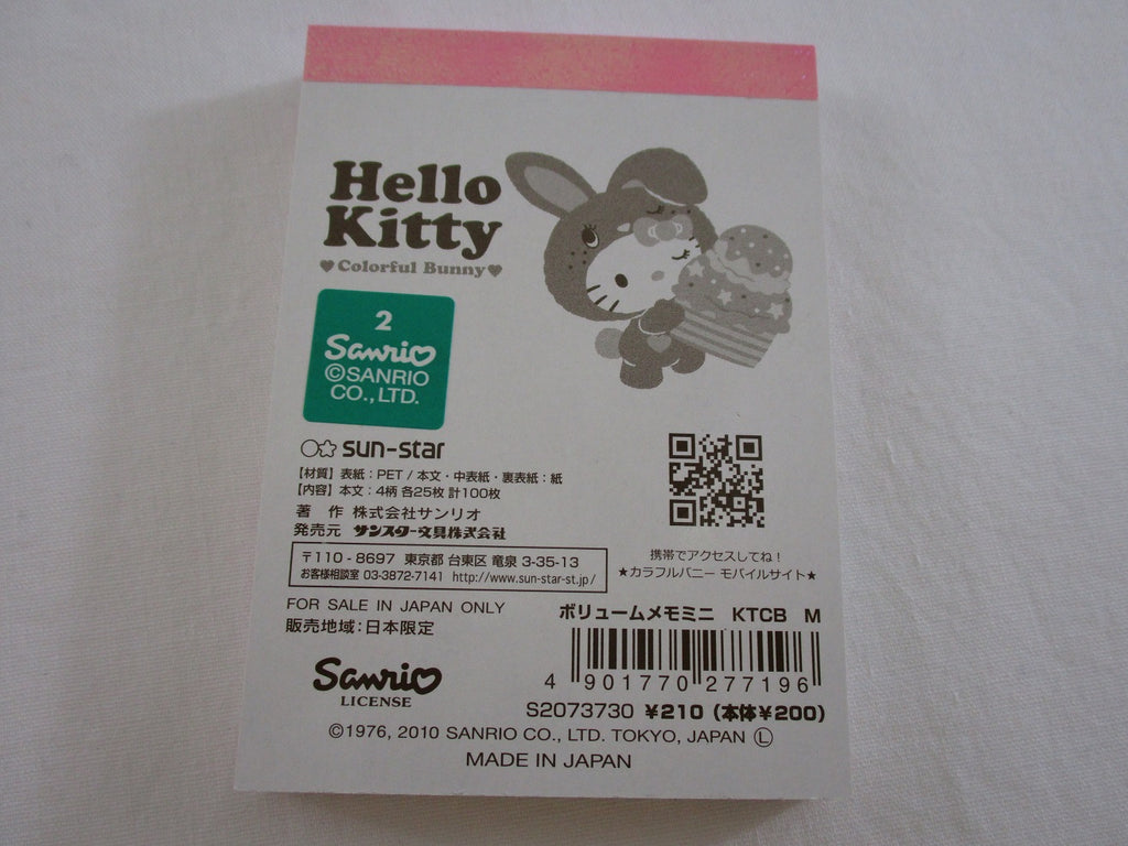 Cute Kawaii Sanrio Hello Kitty Colorful Bunny Mini Notepad / Memo Pad - A - Stationery Design Writing Collection