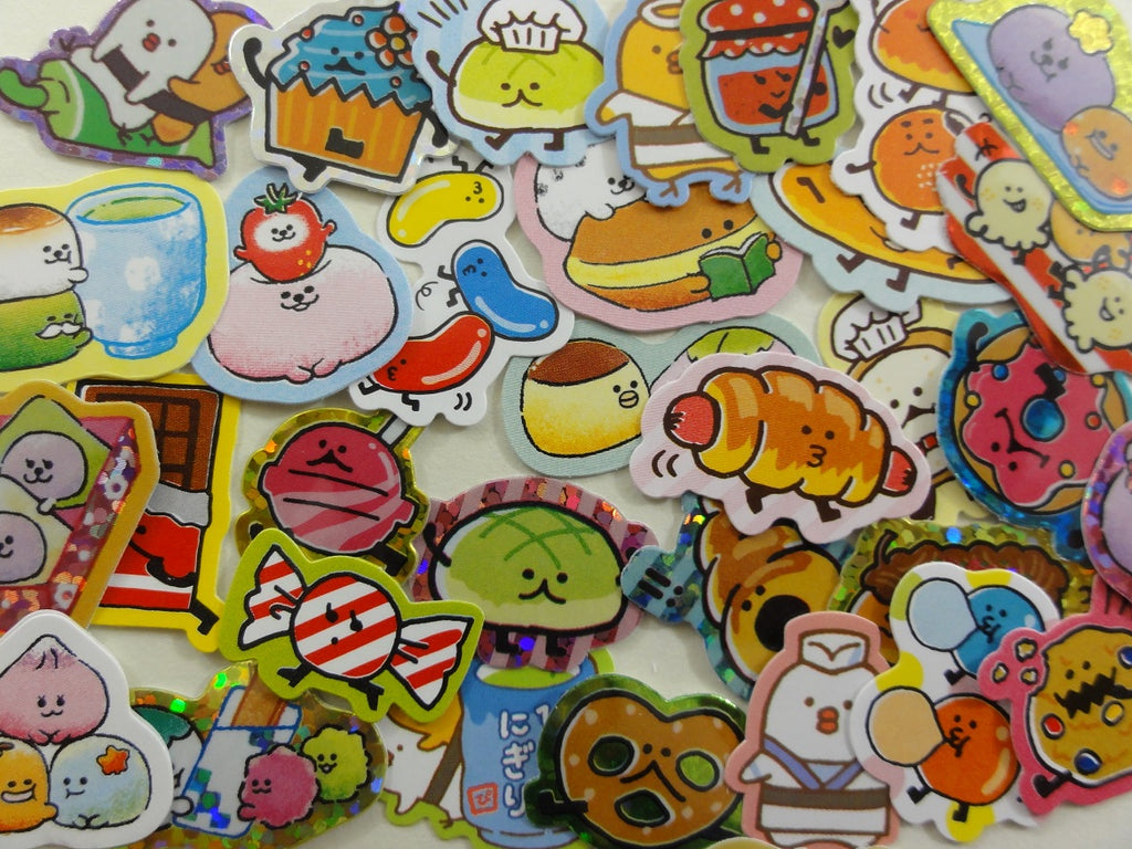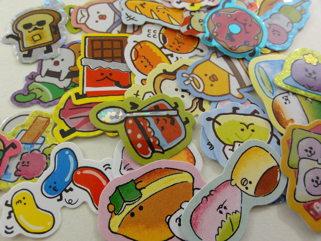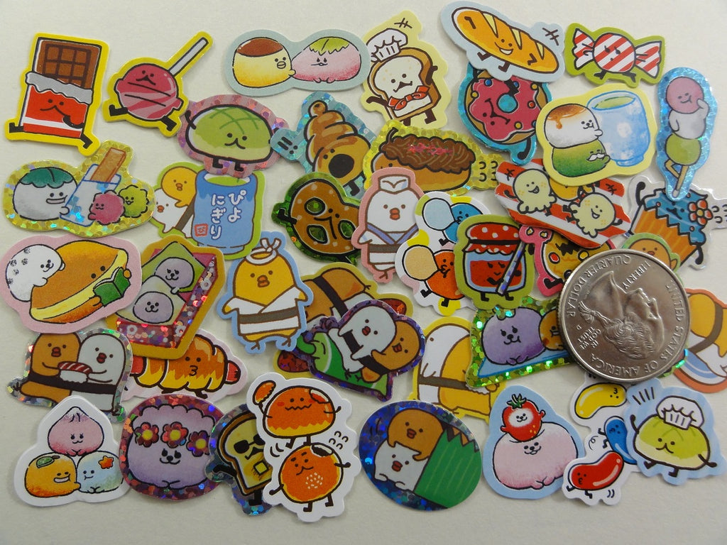 40 Food theme (sushi, mochi, pretzel, bread, chocolate, cookies, many more) flake stickers (40 different designs)