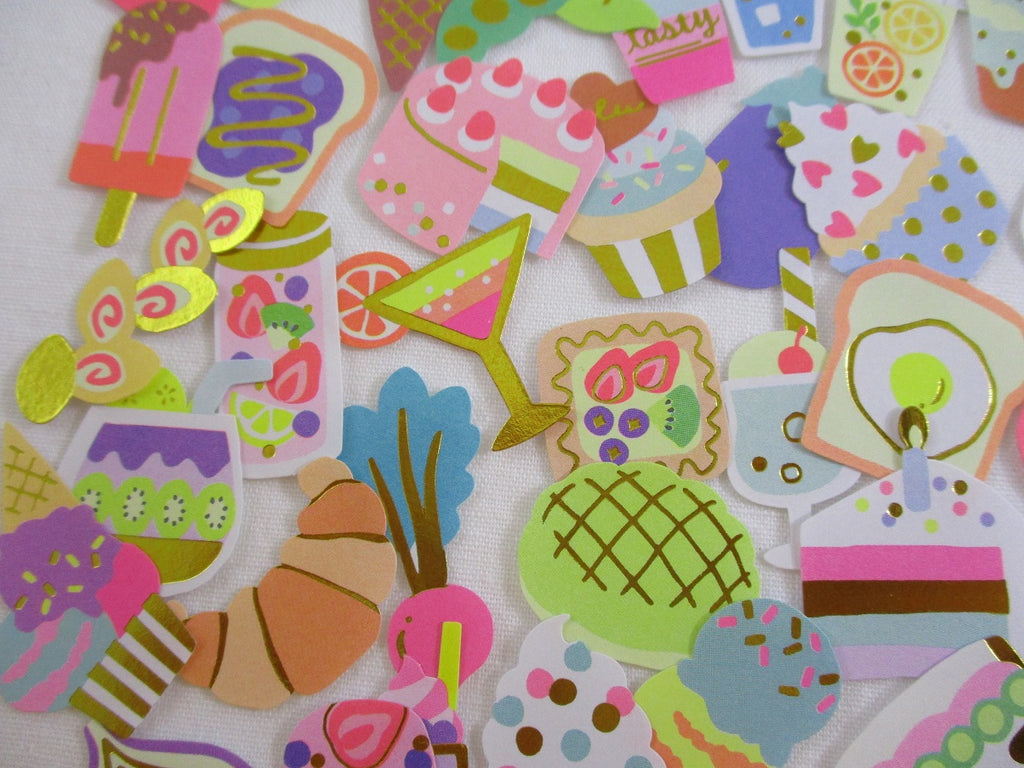 50 drink, food, cake, bakery, bread, veggie, fruit theme flake stickers (50 different designs)