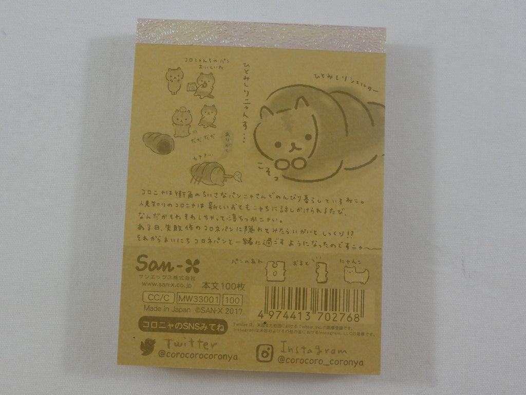 Kawaii Cute San-X CoroNya Bread Cat Mini Notepad / Memo Pad - F - Note Writing Stationery Designer Collectible