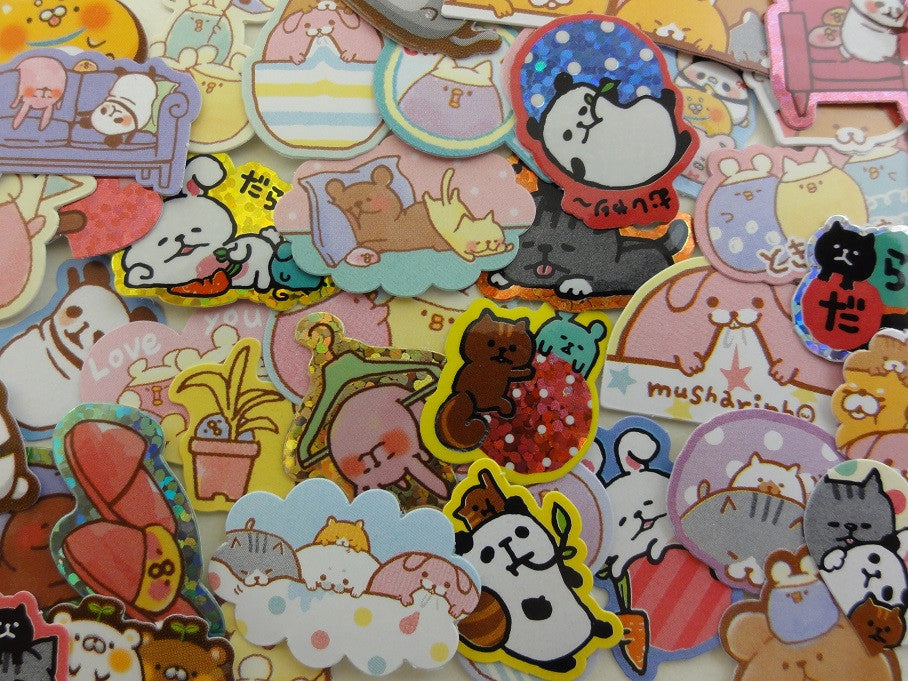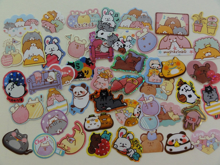 47 relax / sleepy / stacked animal theme flake stickers (47 different designs)