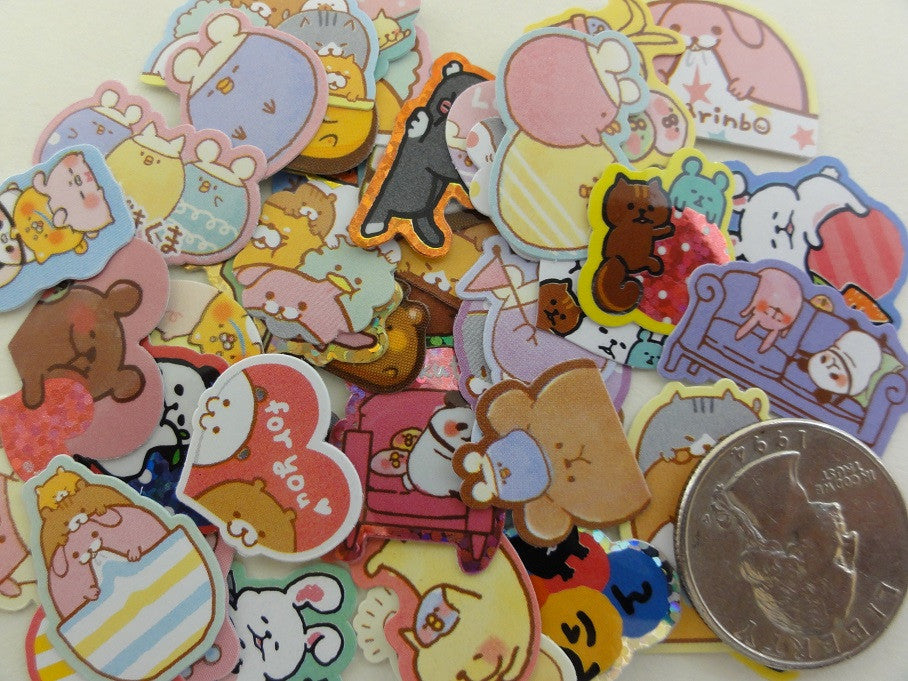 Cute Kawaii Stacked Sleepy Relax Animal Friends Flake Stickers - 47 pcs
