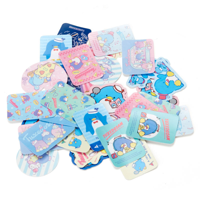 Collectible ૮ ・ﻌ・ა - Cute Kawaii Sanrio Tuxedosam Penguin Flake Stickers in Mini Plastic Container 2018 - Collectible
