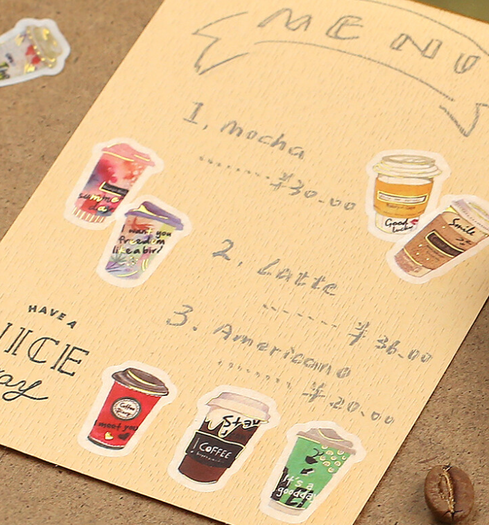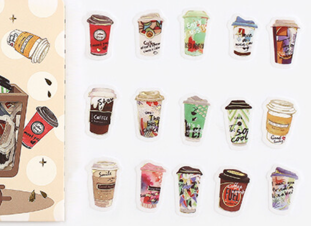 A carf full of coffee theme flake stickers sack from BGM Japan.