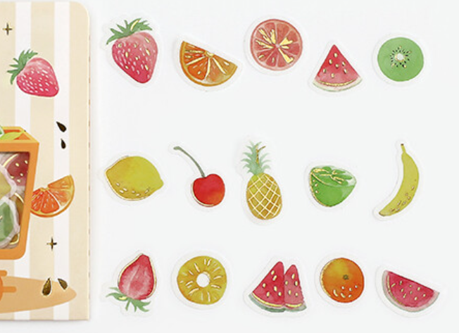 A carf full of fruits theme flake stickers sack from BGM Japan.