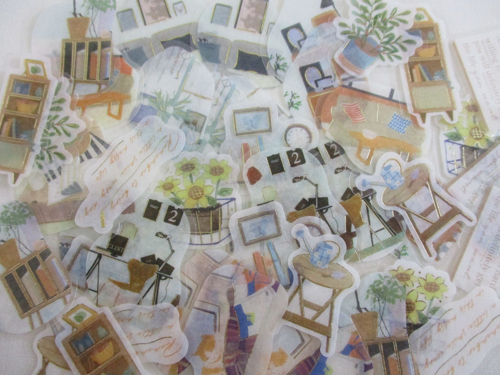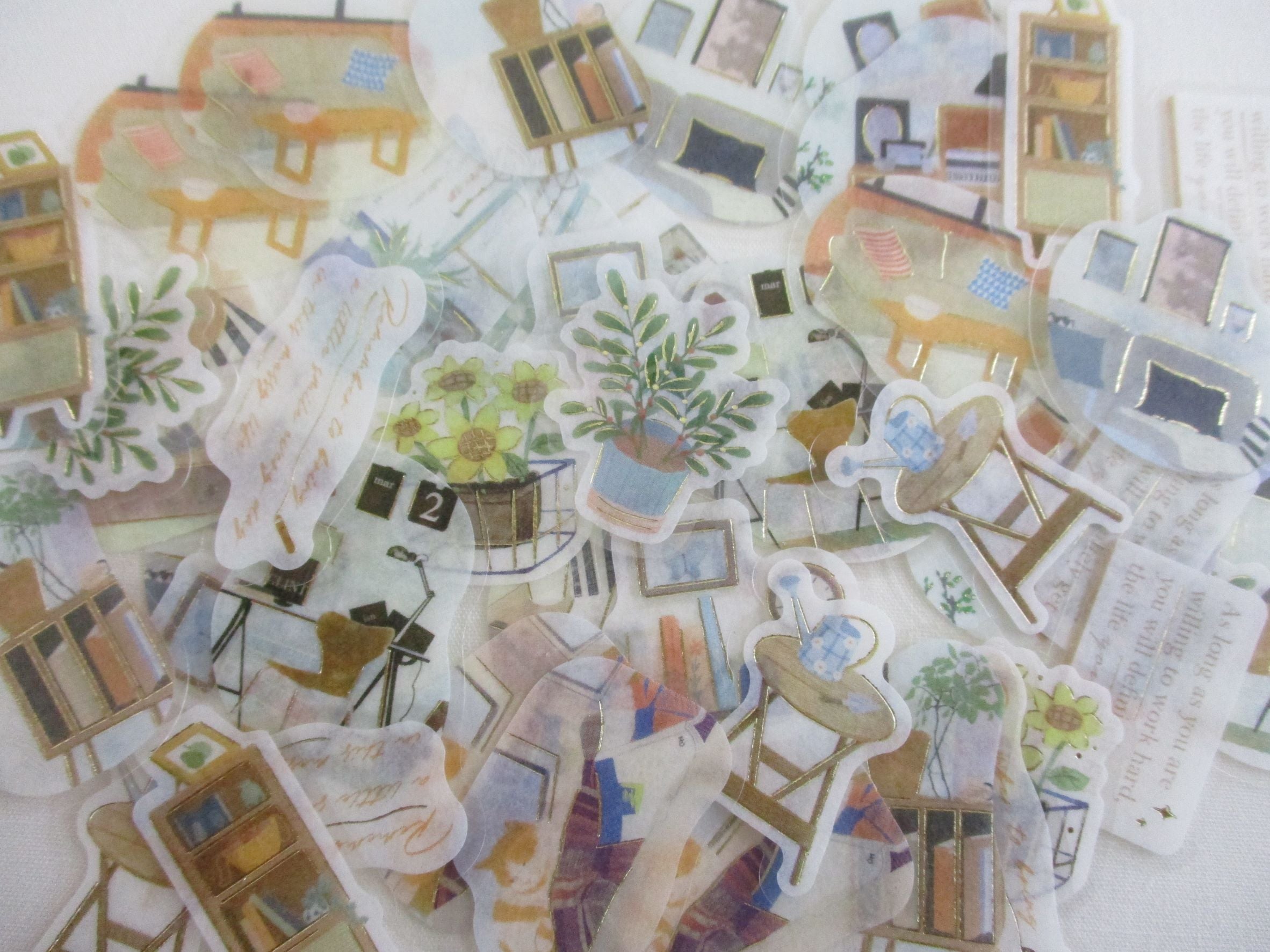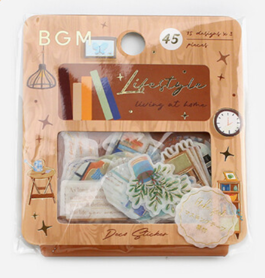 Interior home studio book desk serene flake stickers sack from BGM Japan.