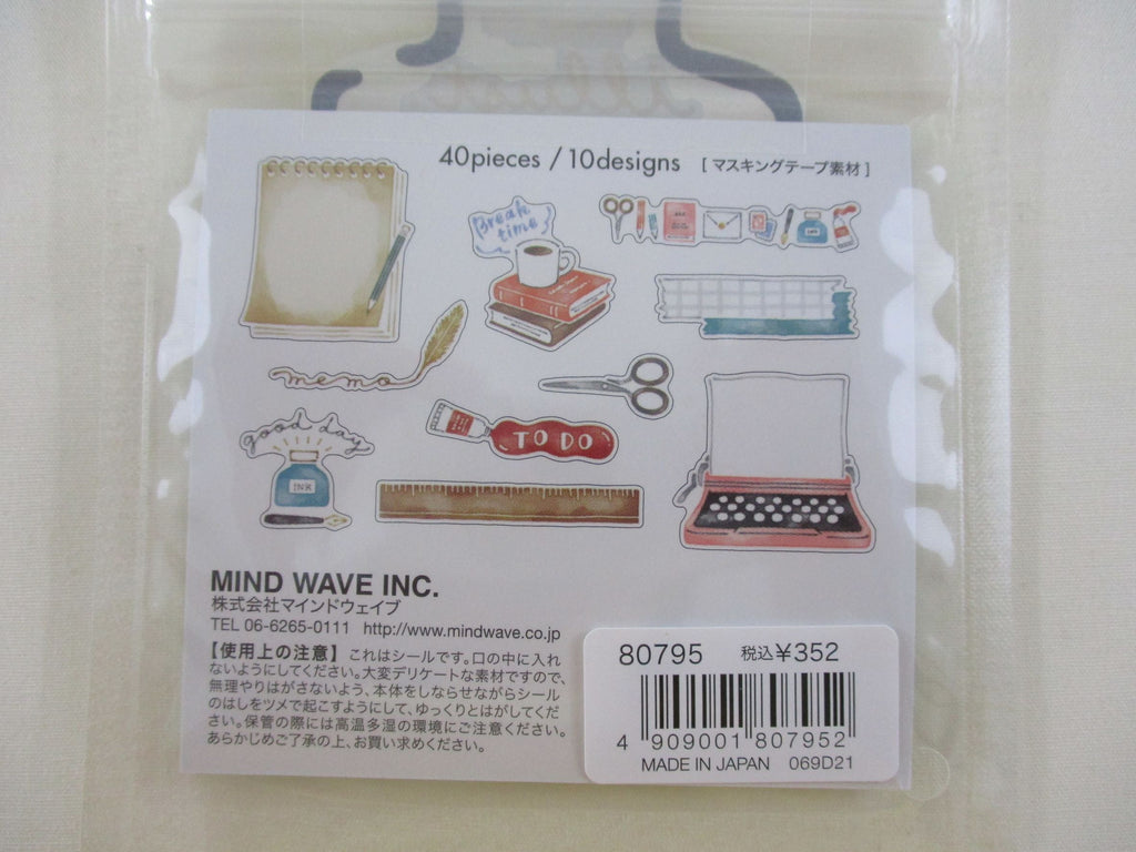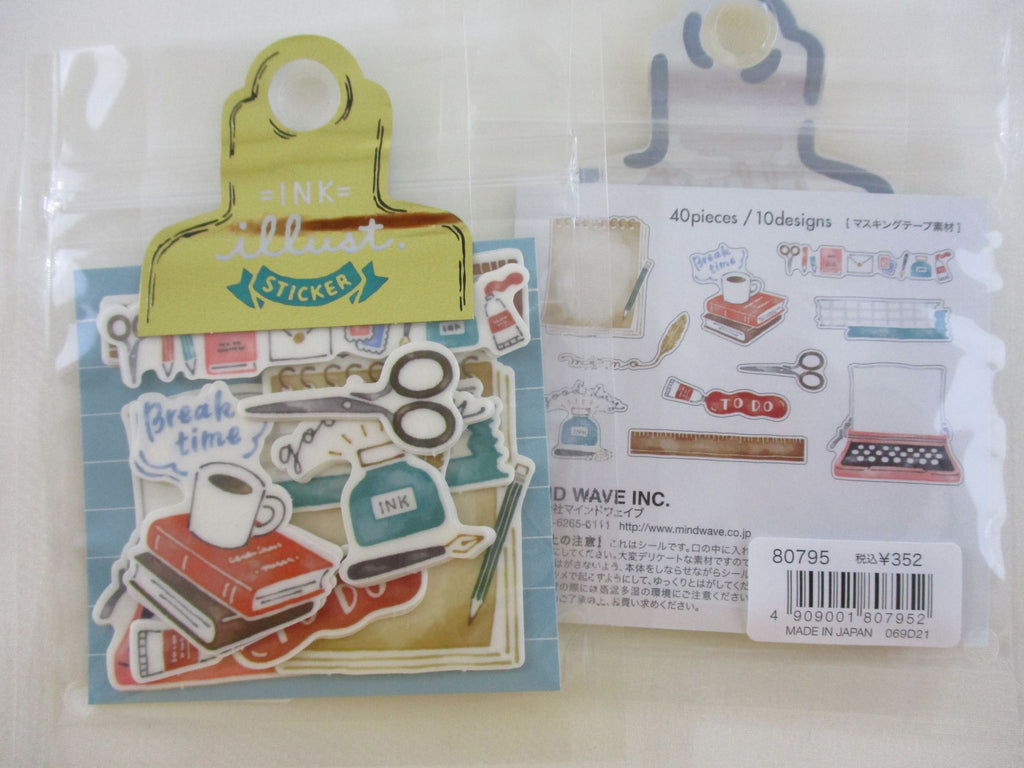 Illustration Ink series - school/office supplies theme flake stickers sack from Mind Wave Japan.